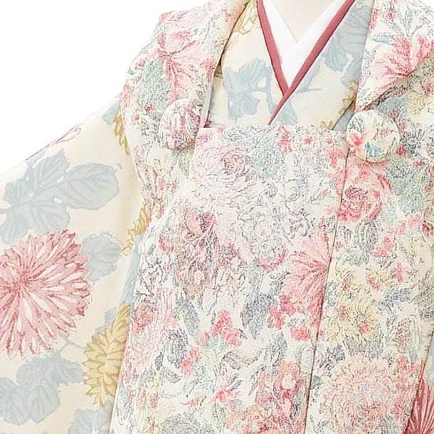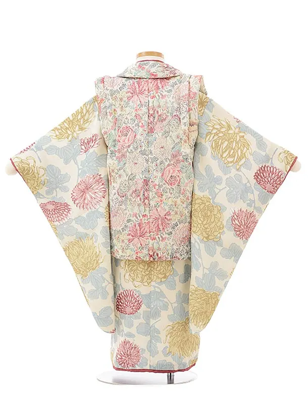 七五三レンタル(3歳女児被布)3813白地花×クリーム色乱菊