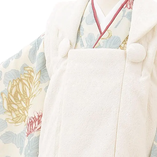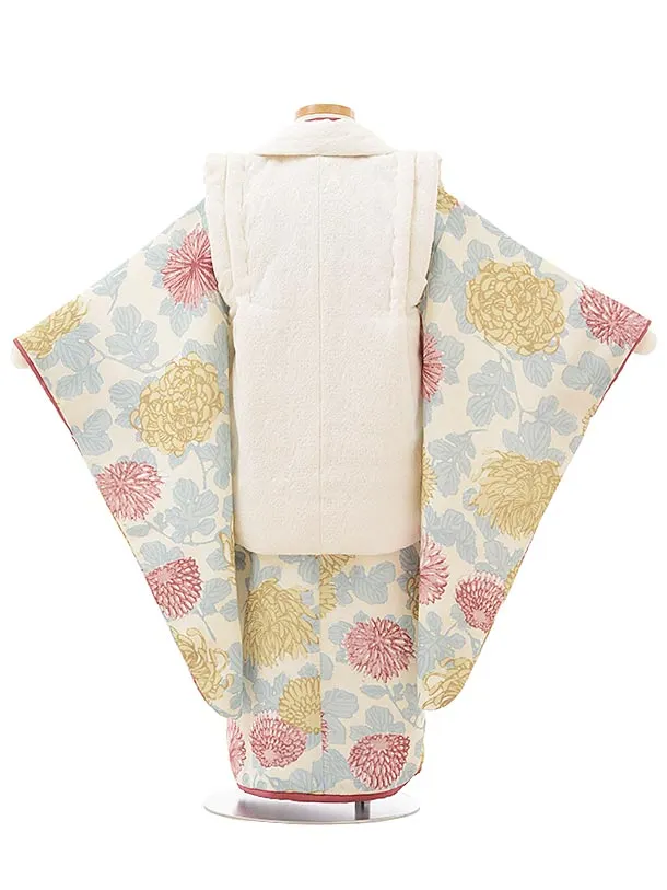 七五三レンタル(3歳女児被布)3814オフホワイトレース調×クリーム色乱菊