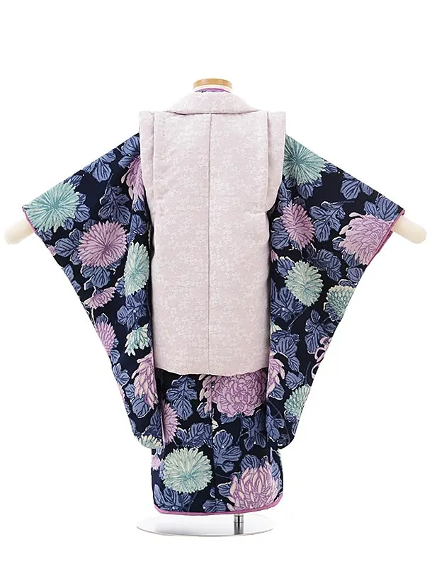七五三レンタル(3歳女児被布)3815薄ラベンダー×紺地乱菊