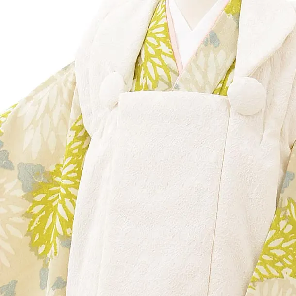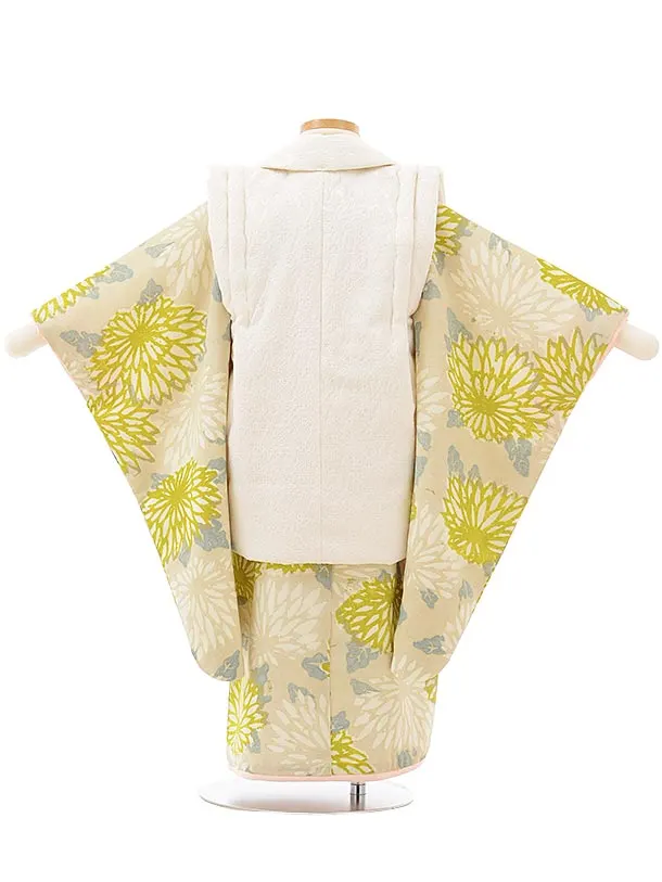 七五三レンタル(3歳女児被布)3818オフホワイトレース調×ベージュに緑菊