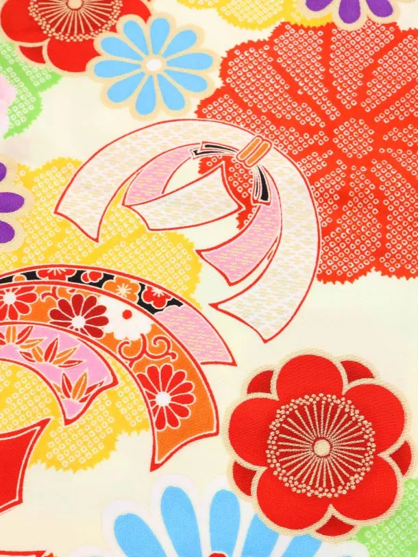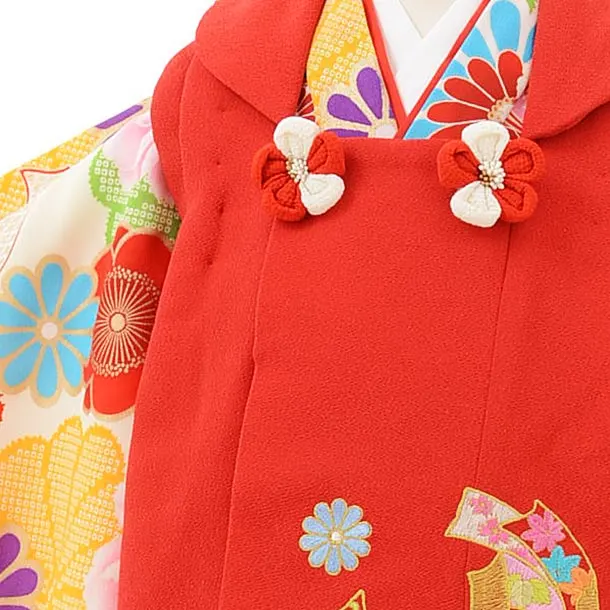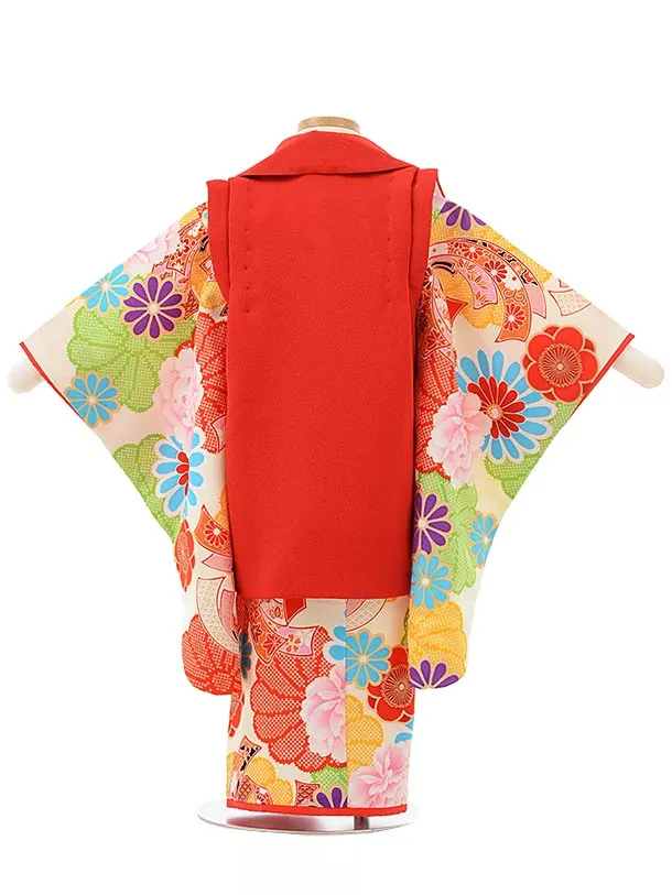 七五三レンタル(3歳女児被布)3833赤地束ね熨斗刺繍×クリーム地花