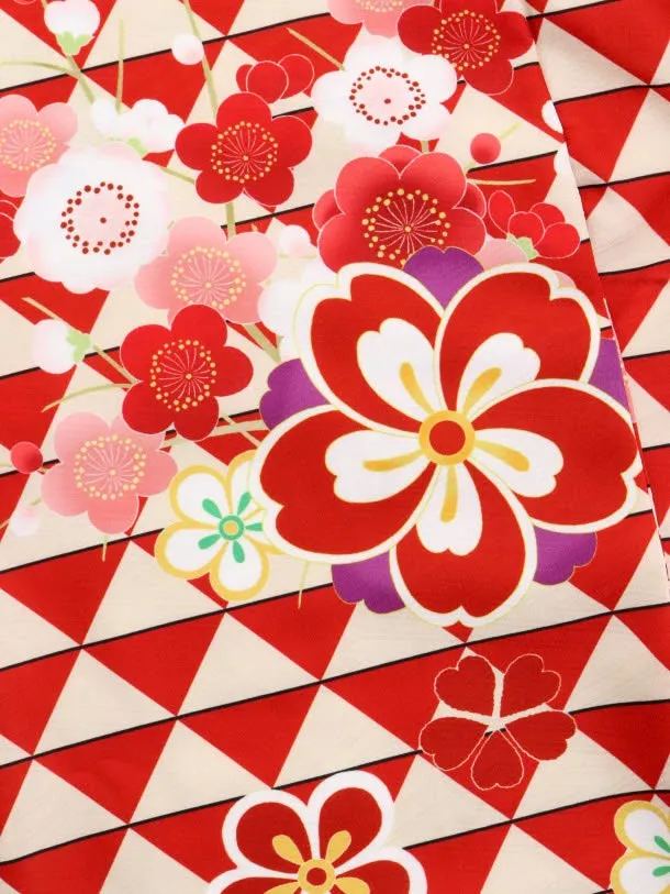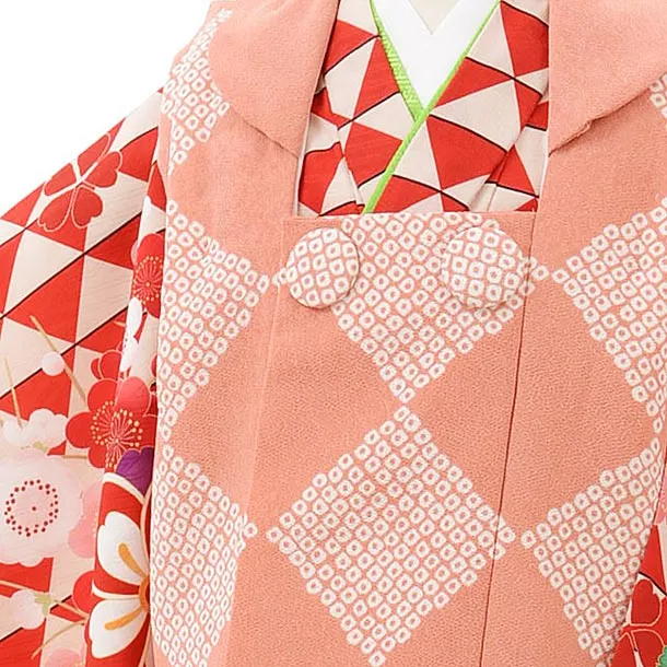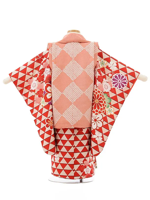 七五三(3歳女被布)3838 ピンク×赤地鱗文様菊