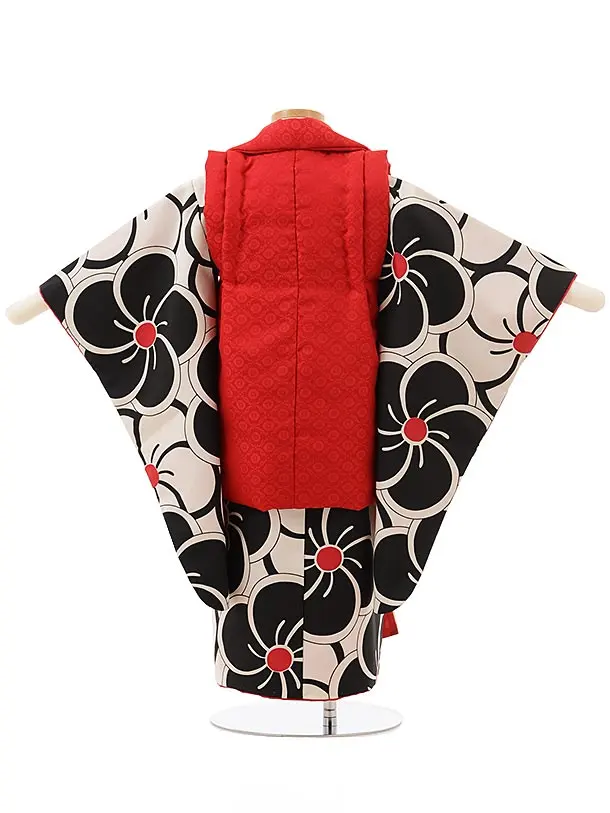 七五三(3歳女被布)3843 赤×黒白ねじり梅