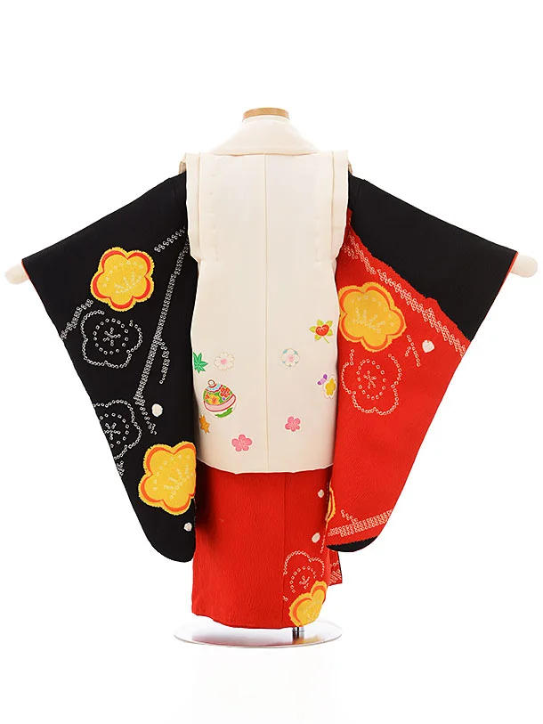 七五三レンタル(3歳女児被布)正絹 3864白鈴x黒赤梅