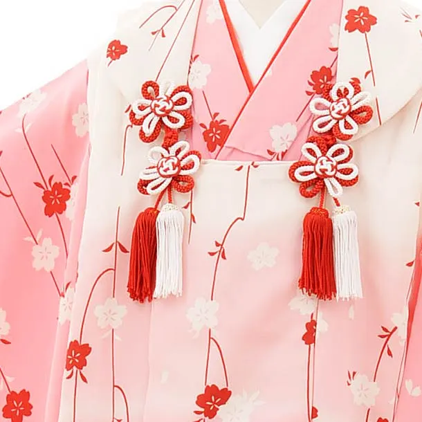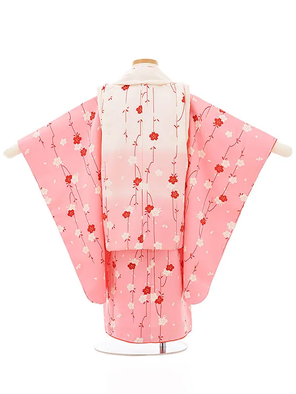 七五三レンタル(3歳女児被布)正絹 3865白ピンクぼかしxピンク桜