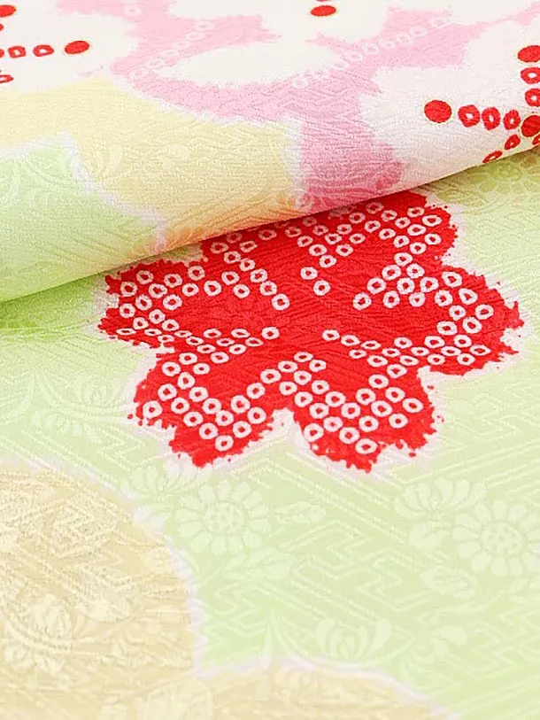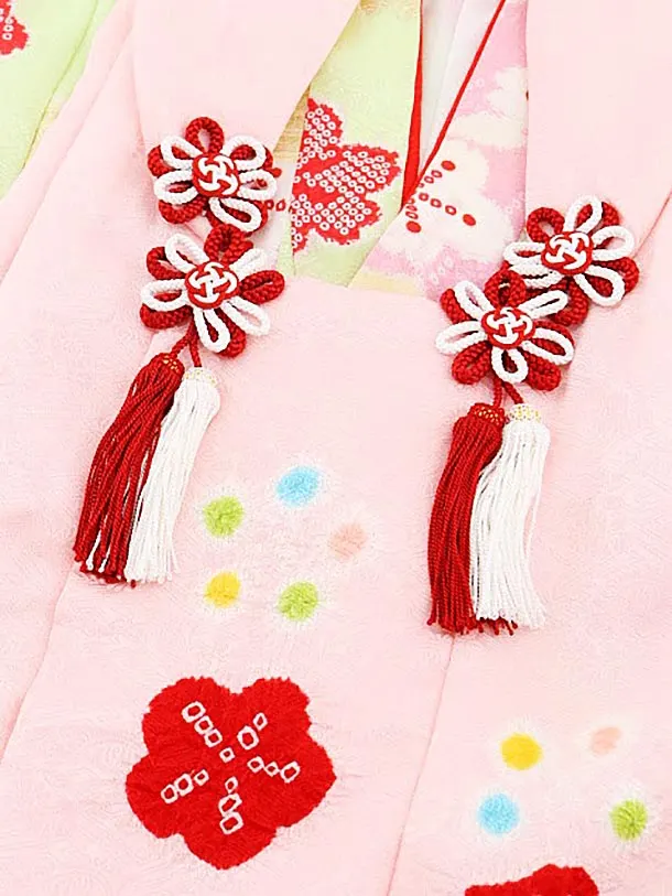 七五三レンタル(3歳女児被布)正絹 3868ピンク梅xひわ色雲取り桜