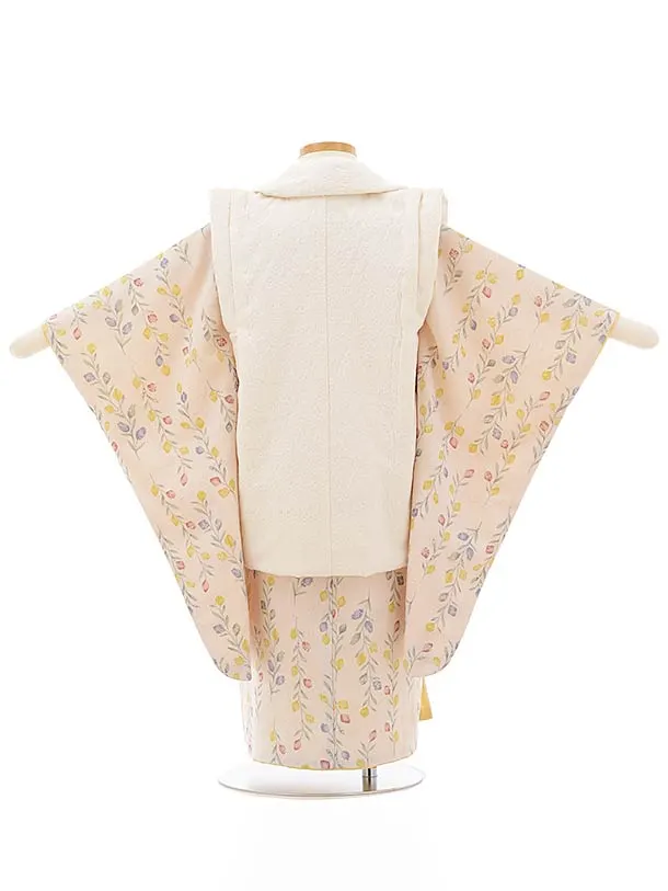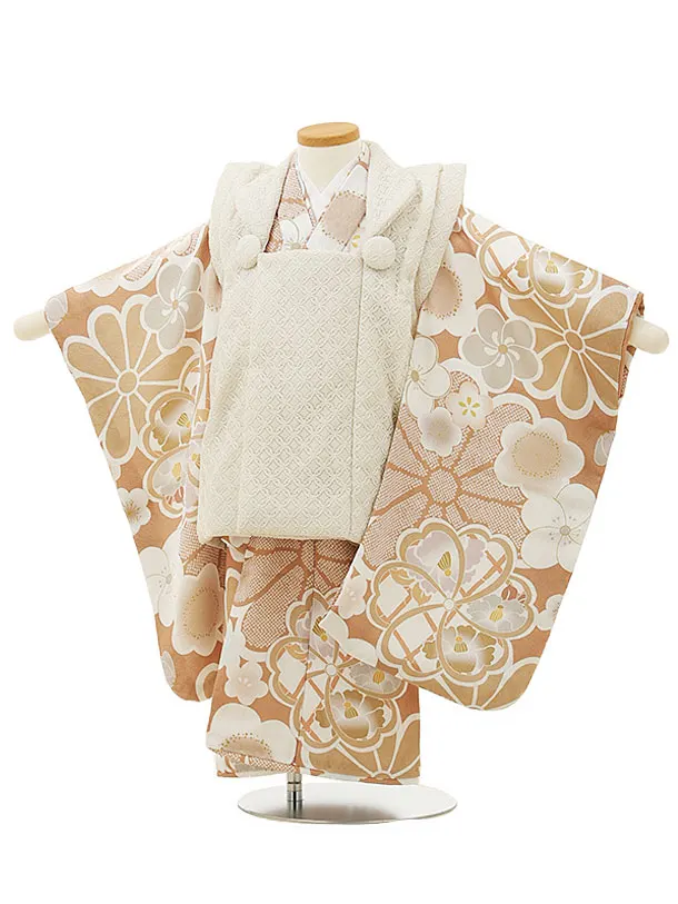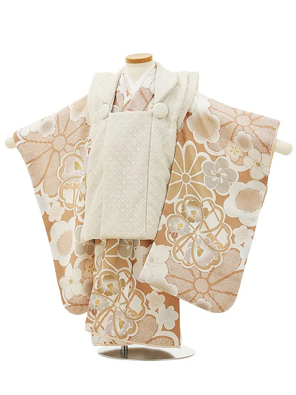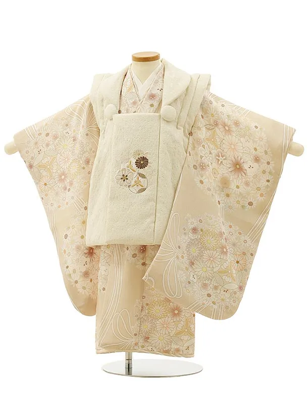 七五三レンタル(3歳女児被布)3881アイボリーレースxベージュ小花