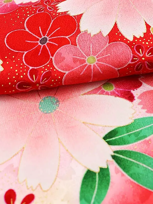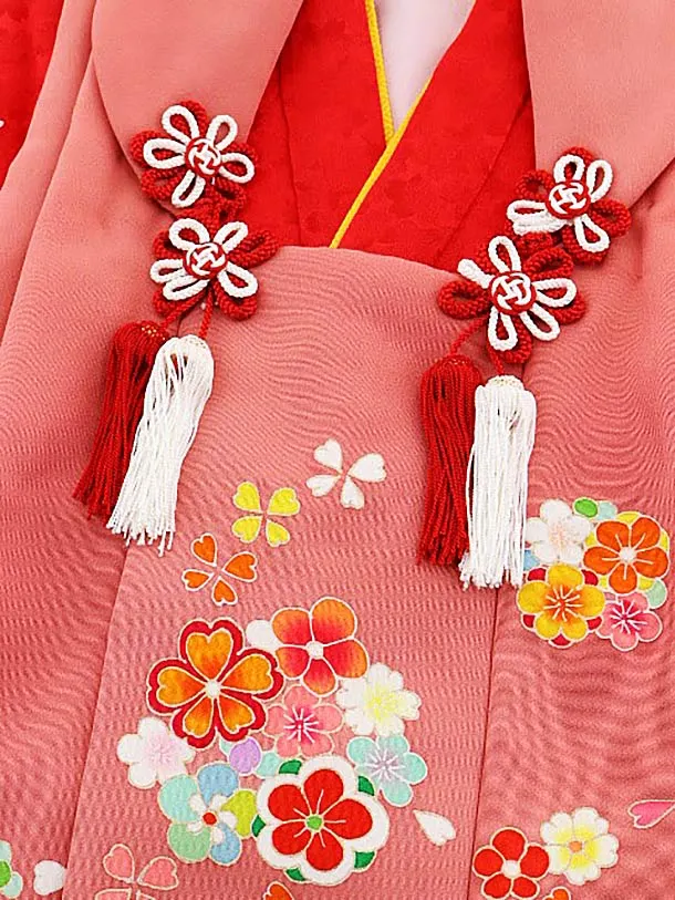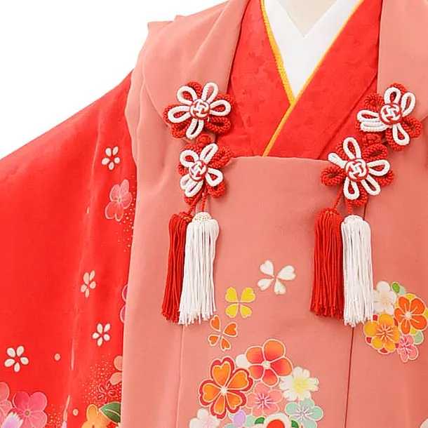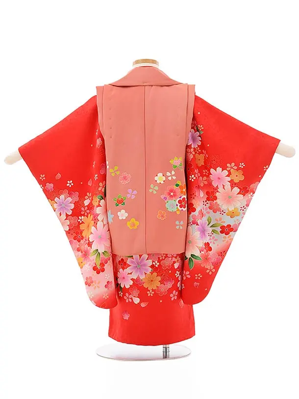 七五三レンタル(3歳女児被布)正絹 3890レトロローズ色花x赤花