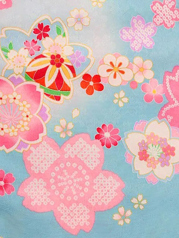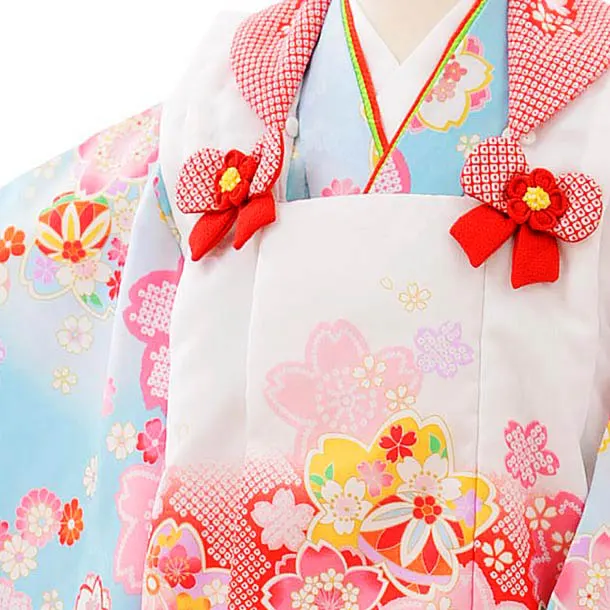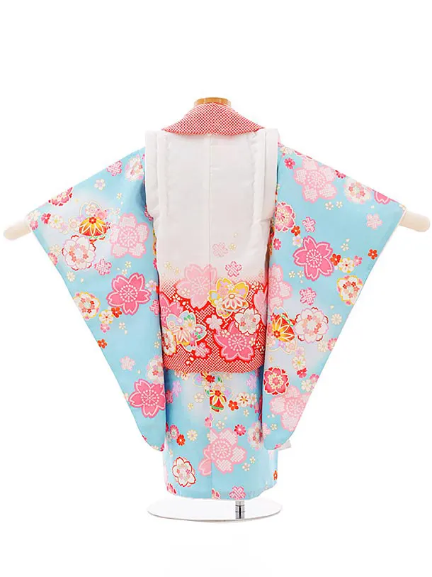 七五三レンタル(3歳女児被布)3898白赤ぼかし桜x水色桜