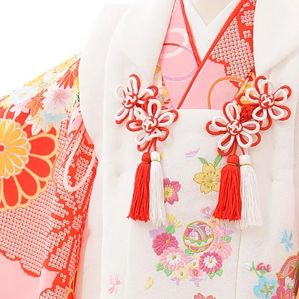七五三レンタル(3歳女児被布)3901白刺繍花xピンク菊に薬玉