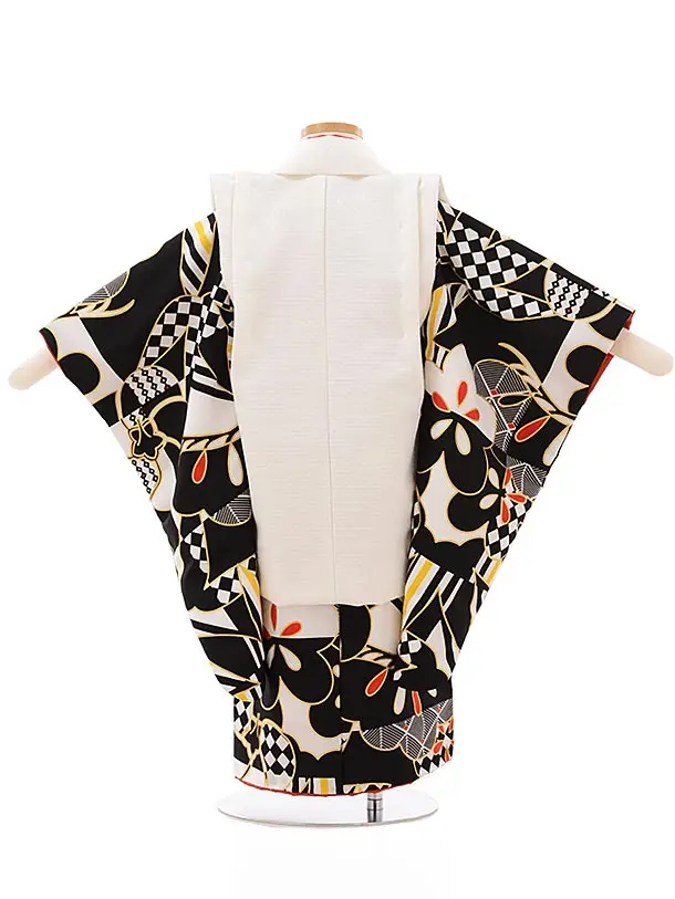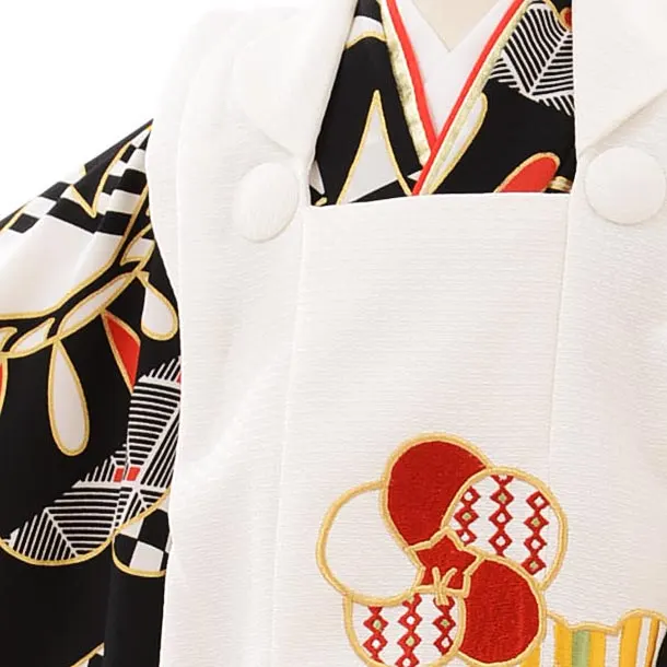 七五三レンタル(3歳女児被布)3905花わらべ 白x黒モダン梅
