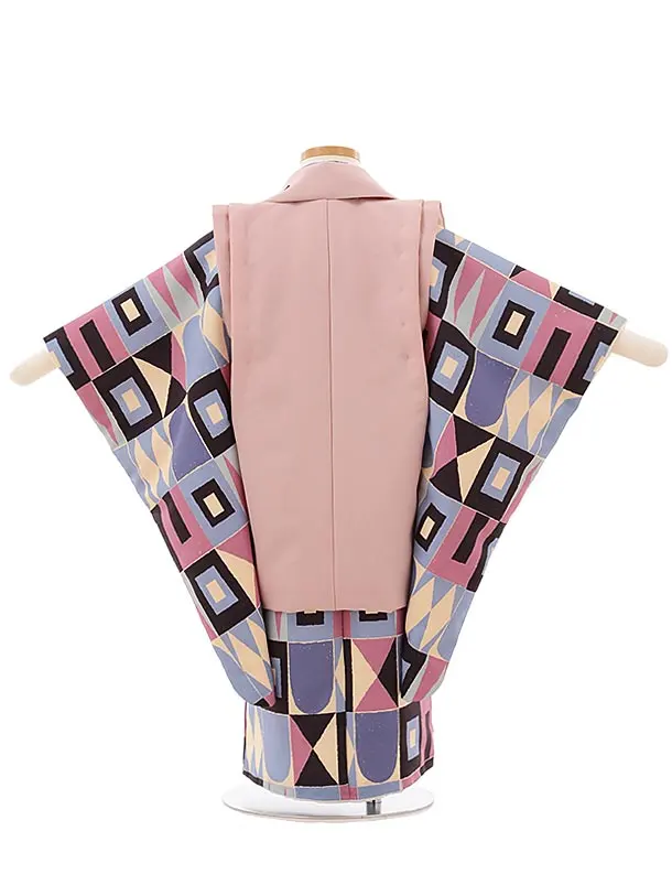 七五三レンタル(3歳女児被布)3906ラフィネココ ライラック色x藤色変わり柄