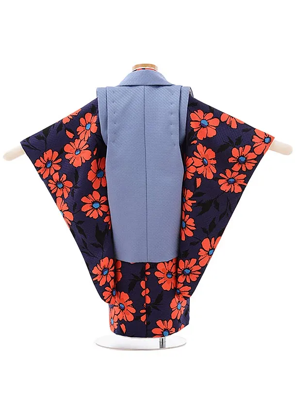 七五三レンタル(3歳女児被布)3907ラフィネココ ブルーxネイビー花