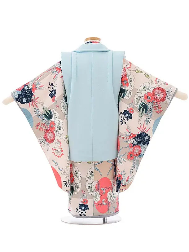 七五三レンタル(3歳女児被布)3908水色xベージュ花