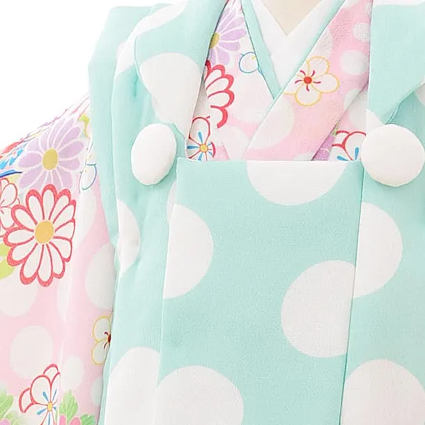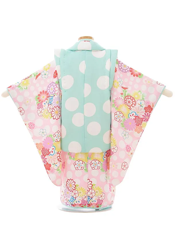 七五三レンタル(3歳女児被布)3910パステルグリーンドットxピンクドット花