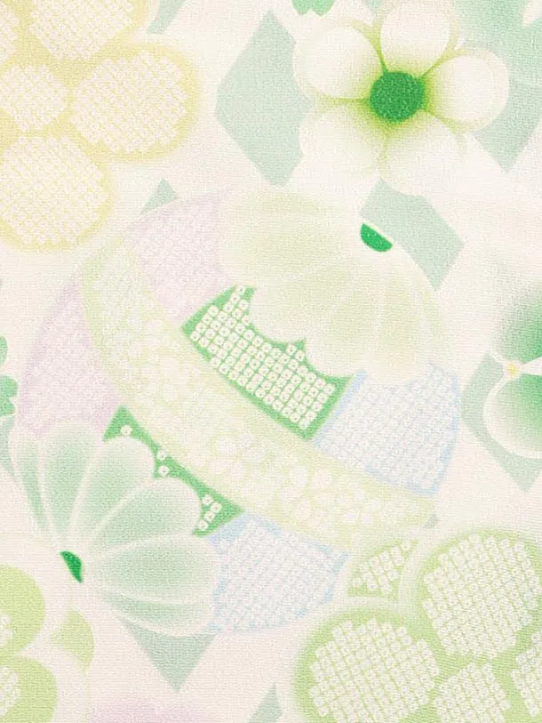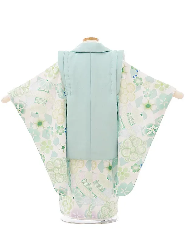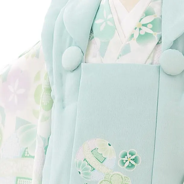 七五三レンタル(3歳女児被布)3916パステルグリーンまり梅x白グリーンまり梅