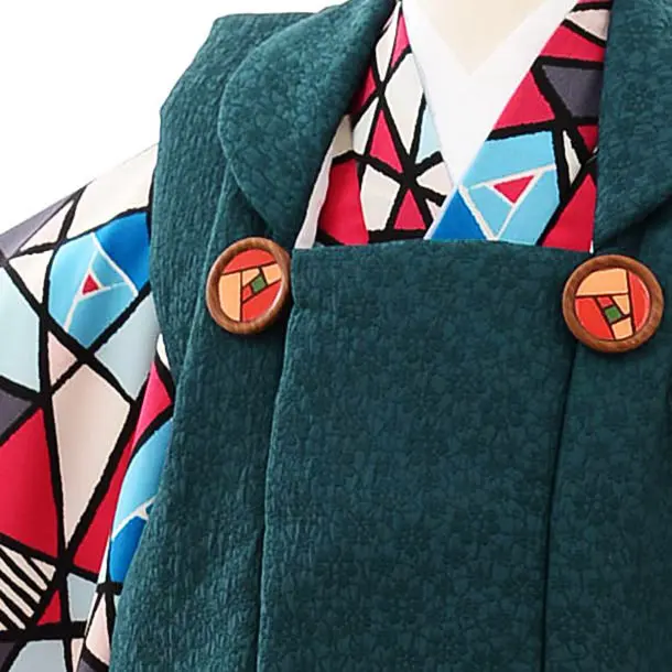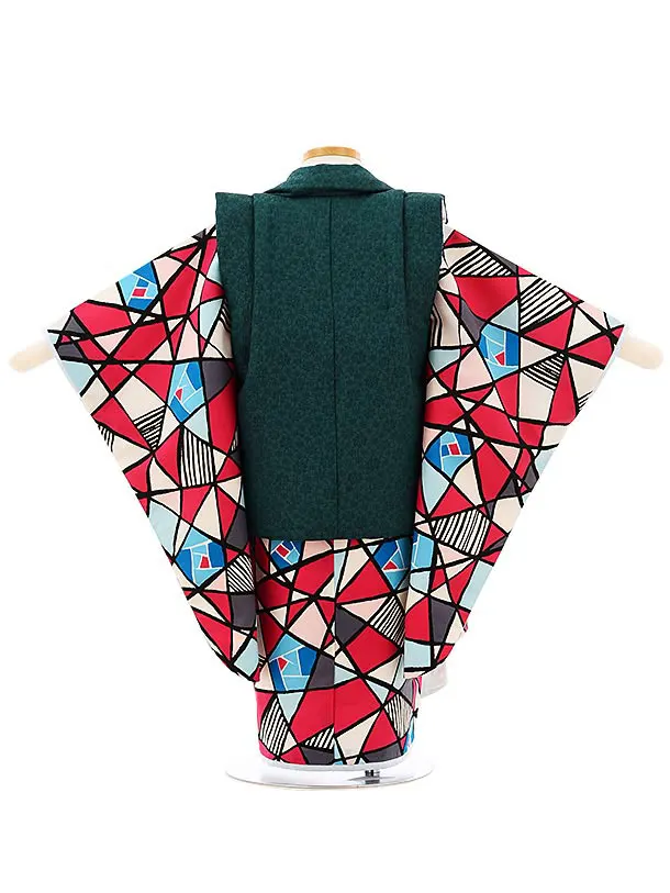 七五三(3歳女児被布)3926ラフィネココ ブルーグリーンxピンク変わり柄