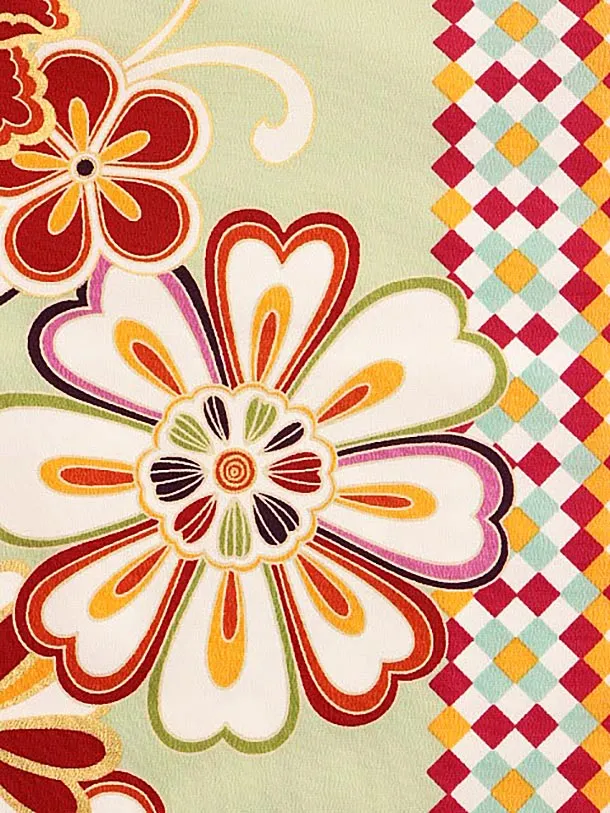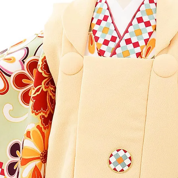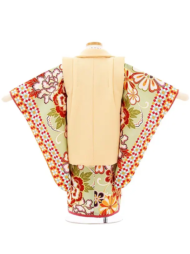 七五三(3歳被布)3927ラフィネココ イエローアイボリーxパステルグリーン花