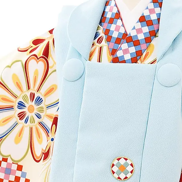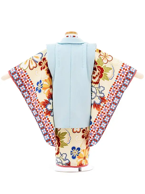七五三レンタル(3歳女児被布)3928ラフィネココ 水色xクリーム色花