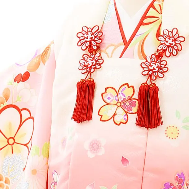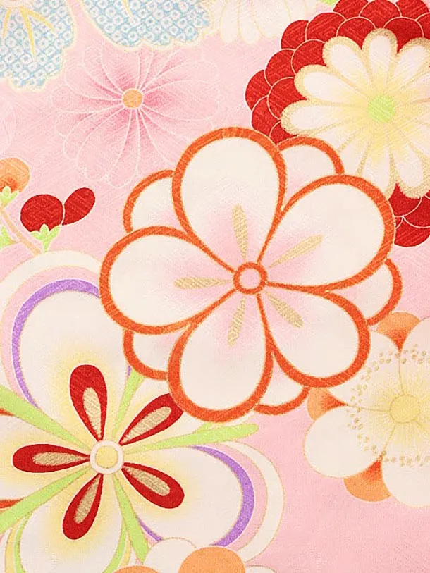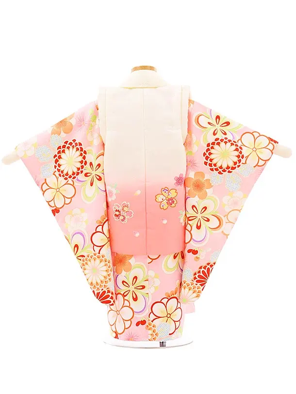 七五三レンタル(3歳女児被布)3930白ピンクぼかし桜xピンク花