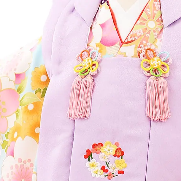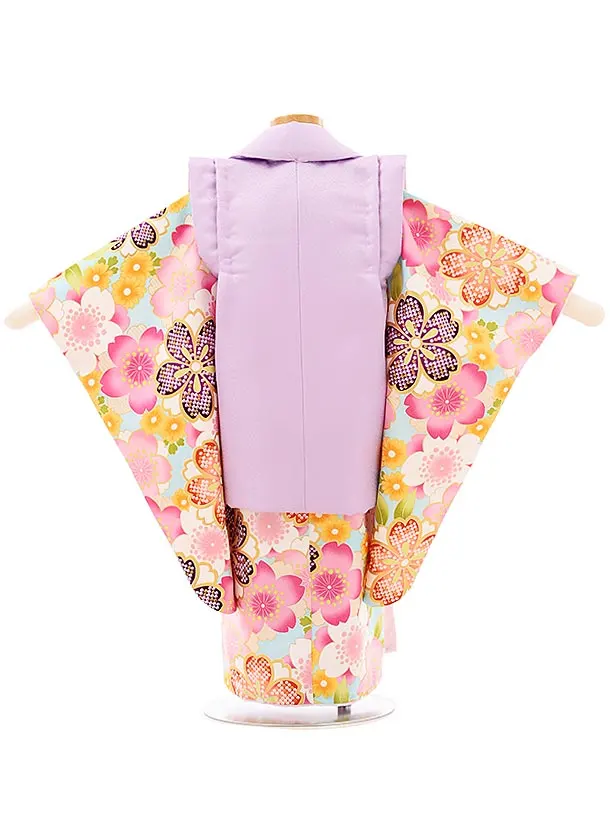 七五三レンタル(3歳女児被布)3944パープル刺繍梅桜x水色桜