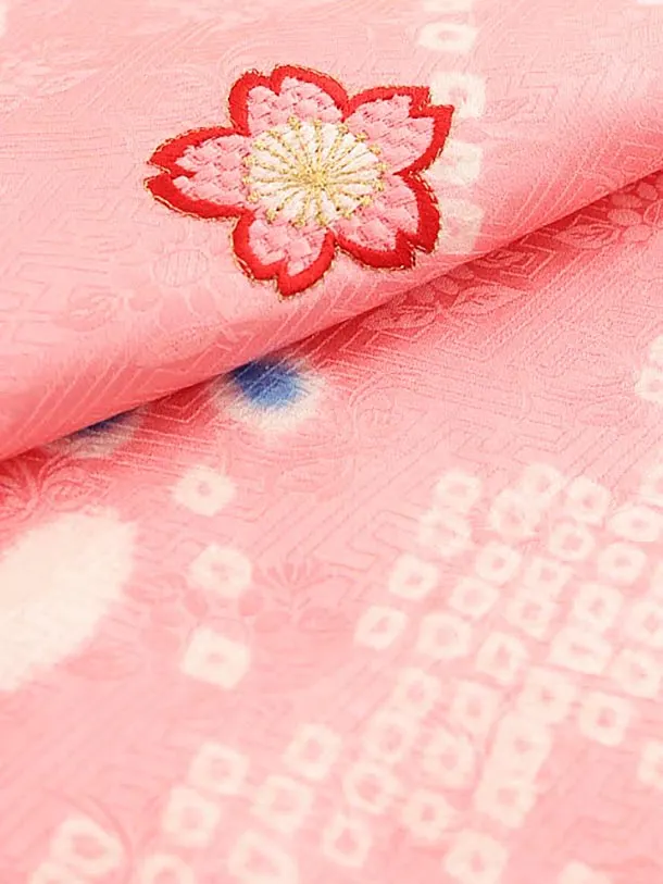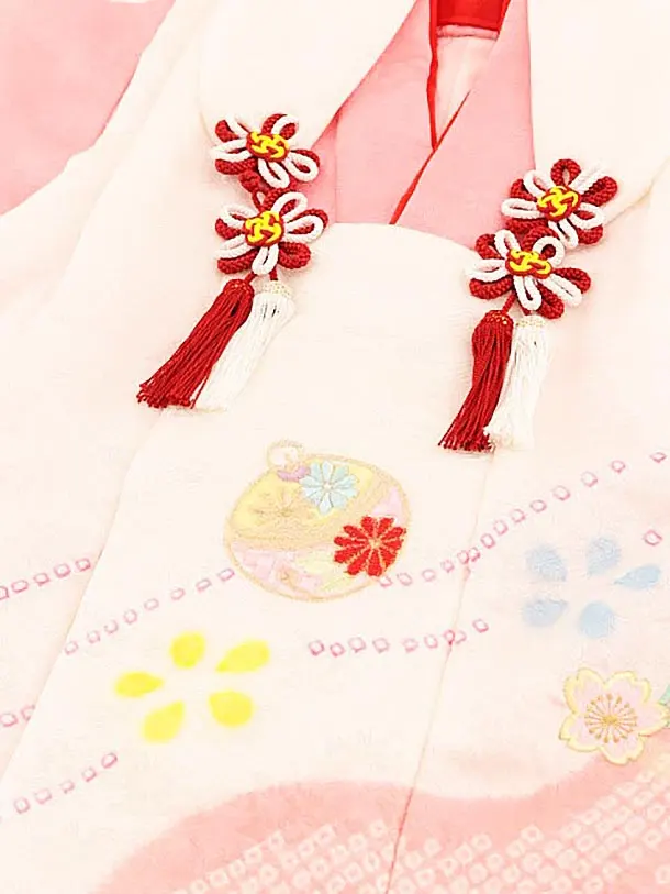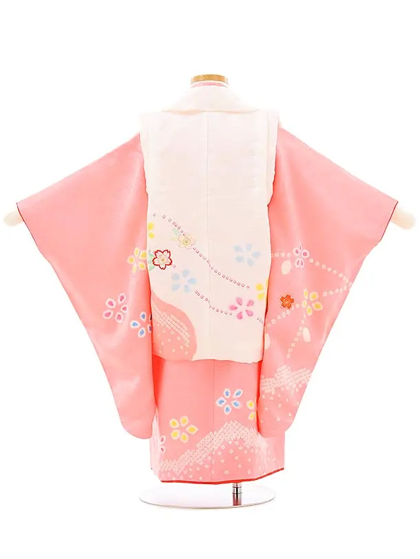 七五三(3歳女児被布)正絹3947白刺繍鈴xピンク刺繍まり桜