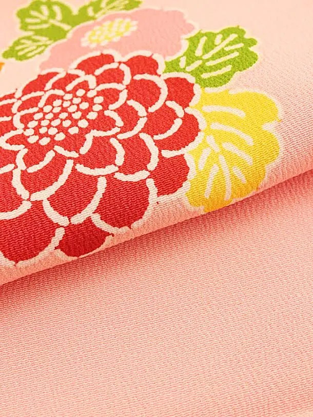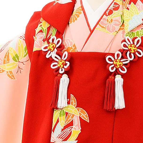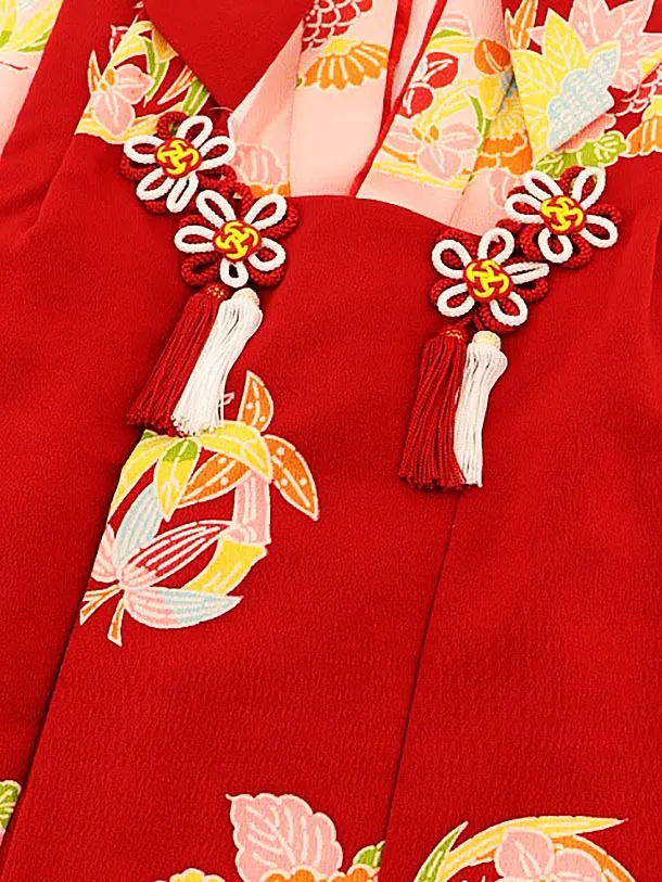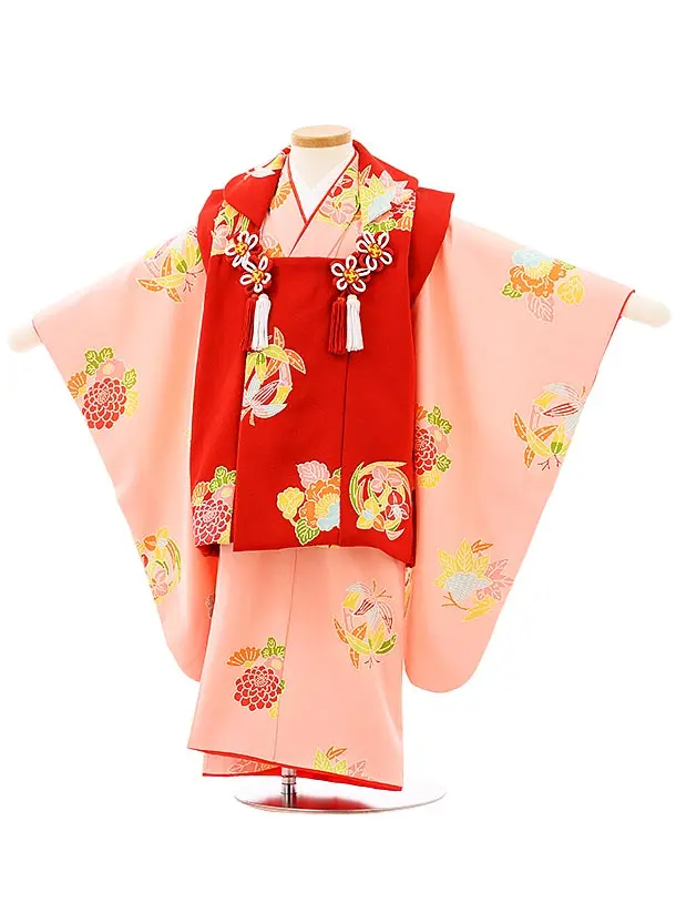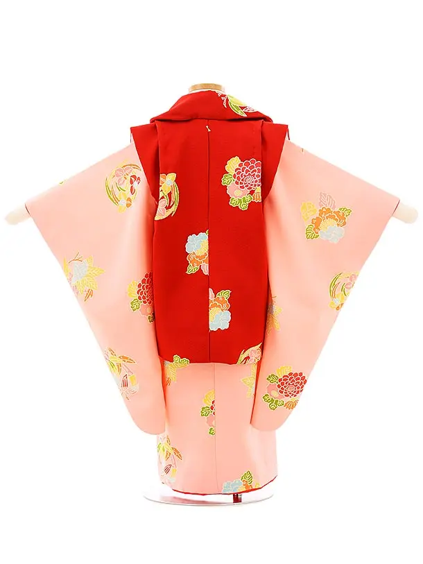 七五三(3歳女児被布)高級正絹 3952赤xピンク花丸文