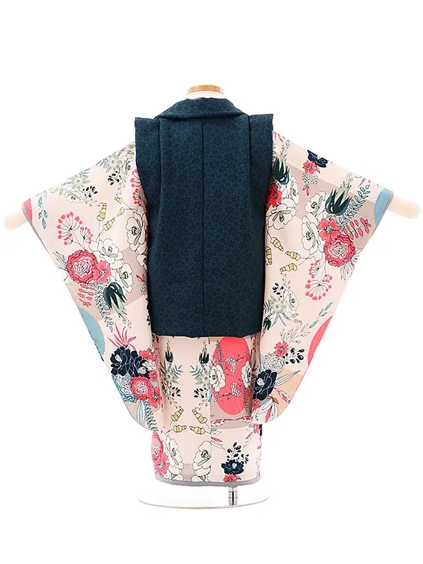 七五三レンタル(3歳女児被布)3968ブルーグリーンxベージュ花