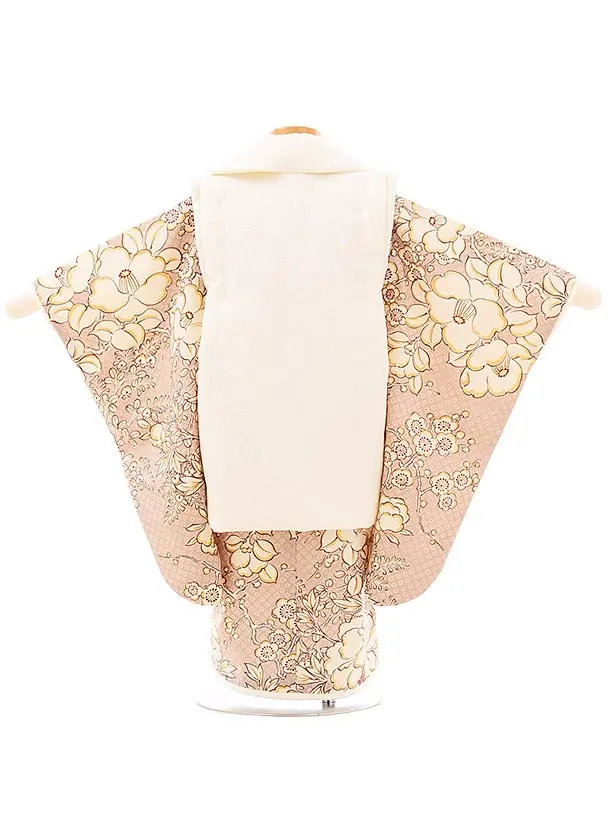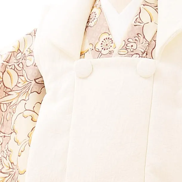 七五三レンタル(3歳女児被布)3974九重 オフホワイトx白茶疋田に華づくし