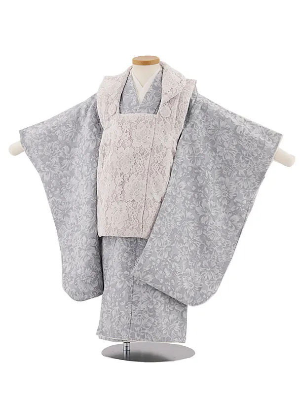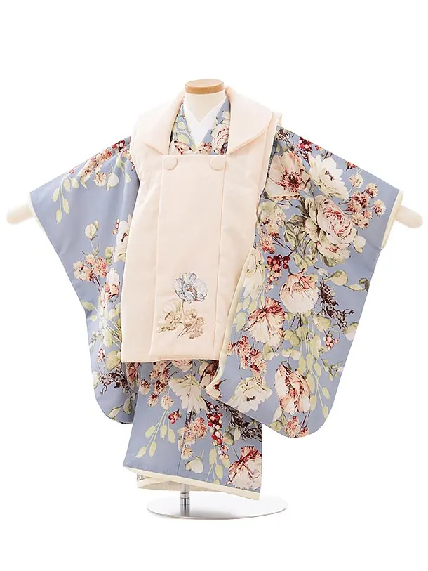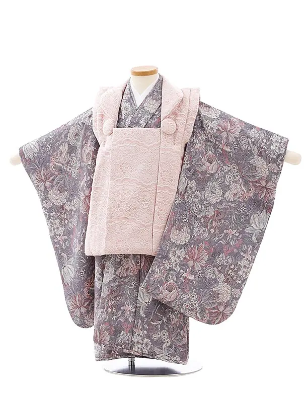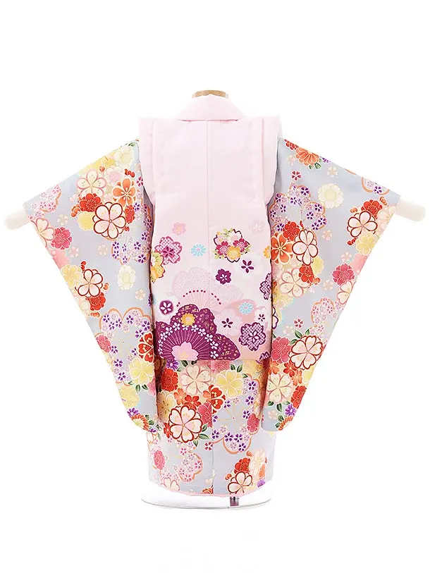 七五三レンタル(3歳女児被布)3986うすピンク桜菊xグレー梅桜菊