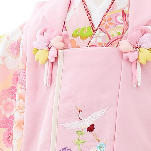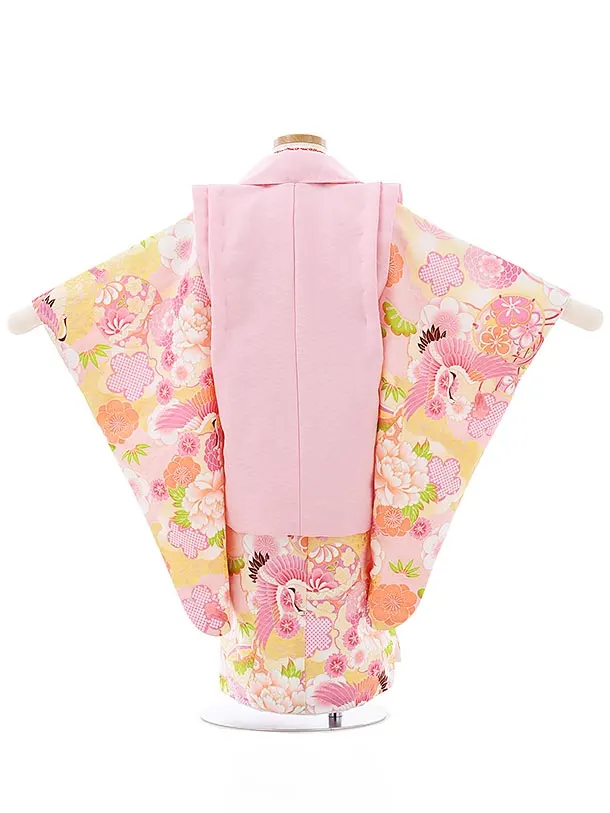 七五三レンタル(3歳女児被布)3990式部浪漫 ピンクxピンク雲取り鶴