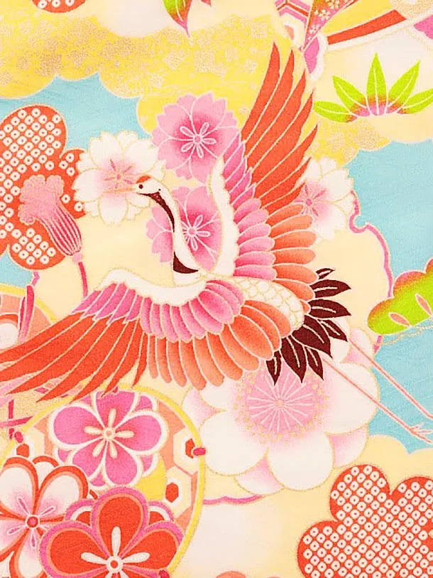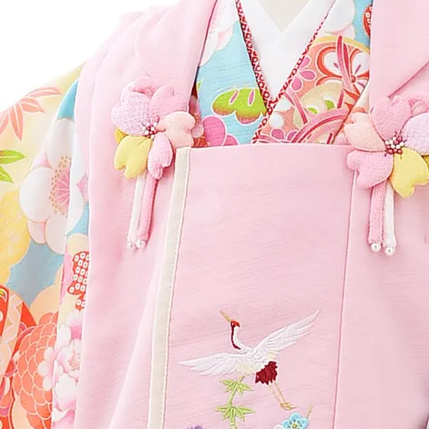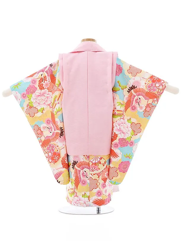 七五三レンタル(3歳女児被布)3991式部浪漫 ピンクx水色雲取り鶴