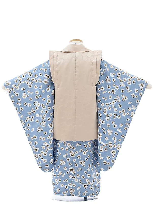 七五三レンタル(3歳女児被布)4000ベージュx水色小花