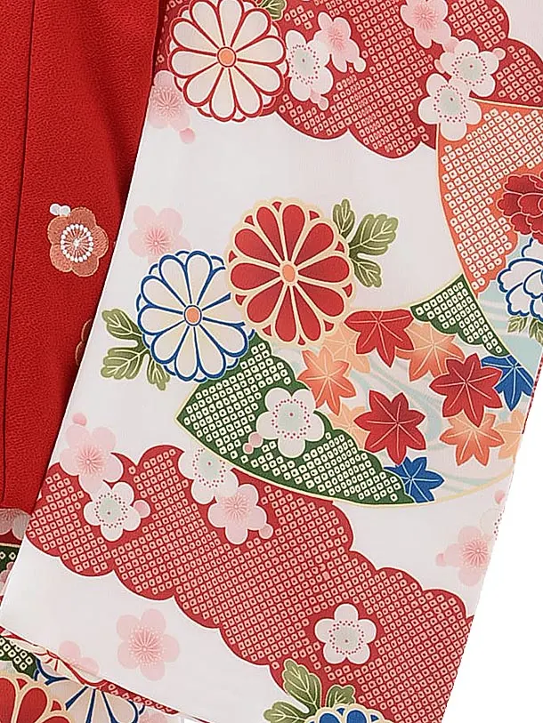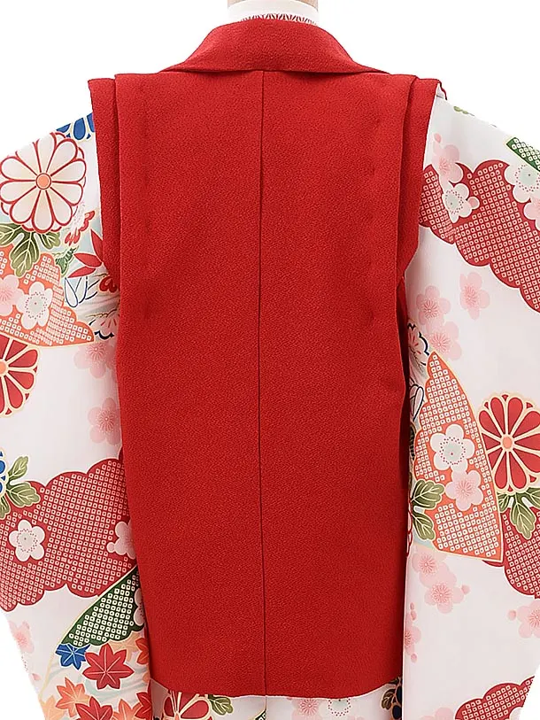 七五三レンタル(3歳女児被布)4008 蒼 赤刺繍菊梅x白地古典花