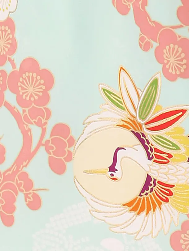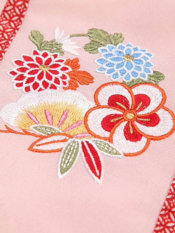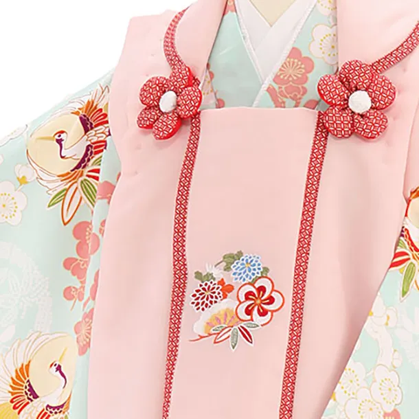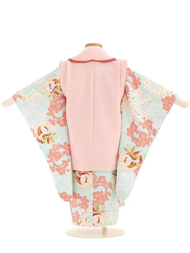 七五三レンタル(3歳女児被布)4011ピンク刺繍花x水色梅鶴紋