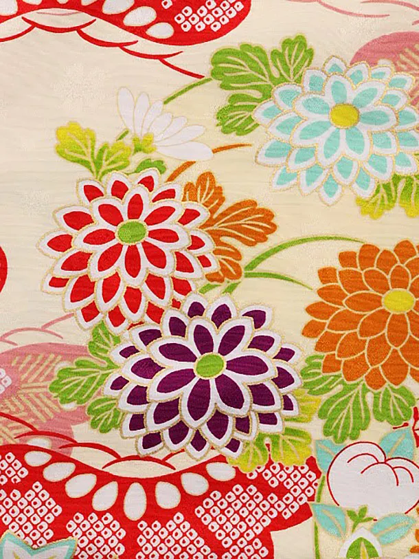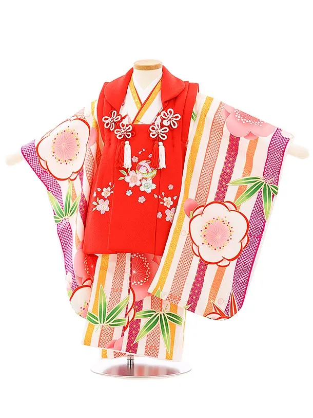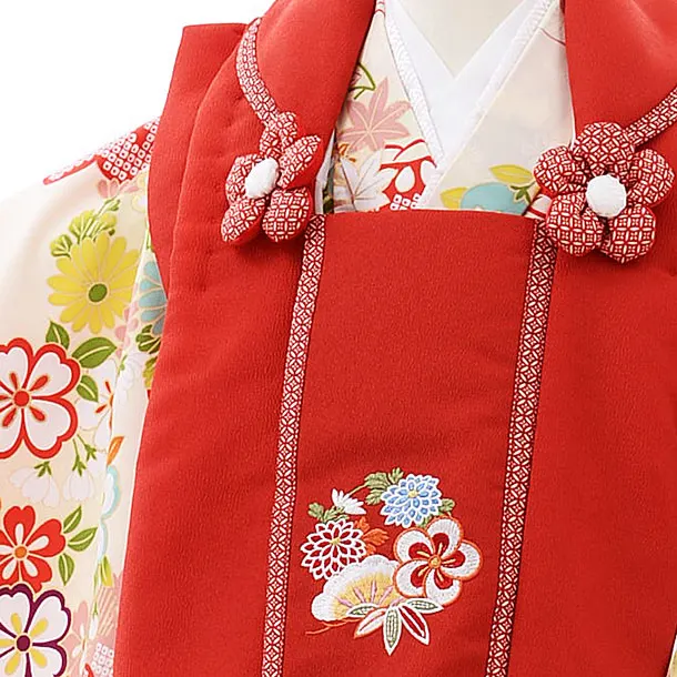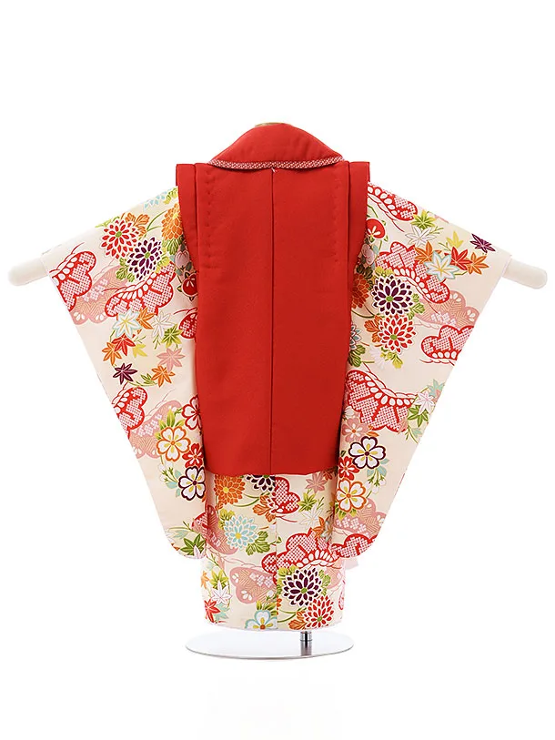 七五三レンタル(3歳女児被布)4012赤刺繍花xクリーム古典花