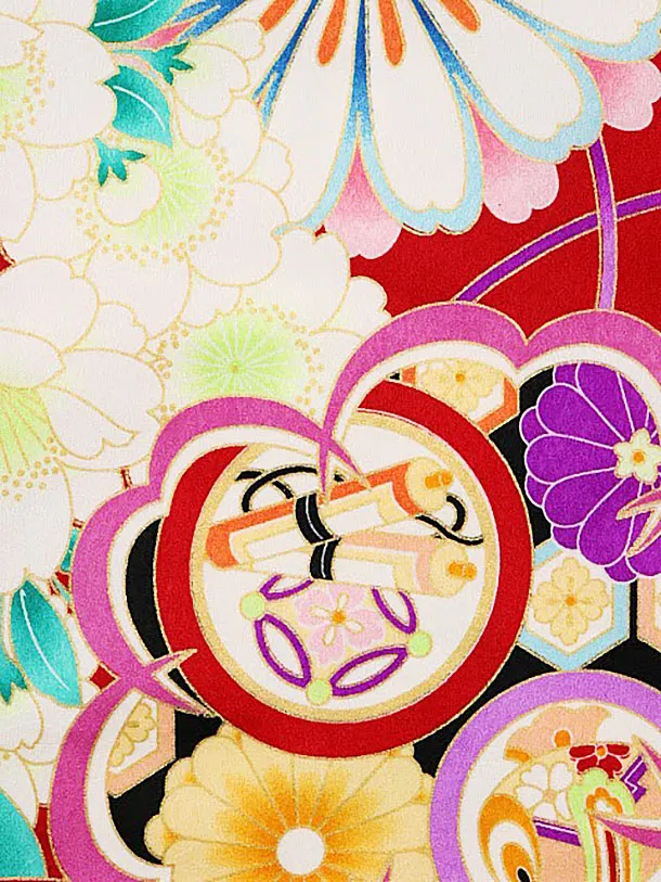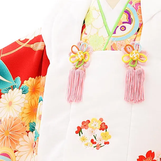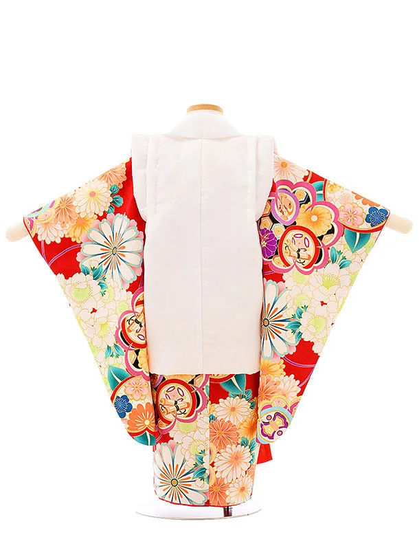 七五三レンタル(3歳女児被布)4020白地刺繍花x赤地薬玉橘