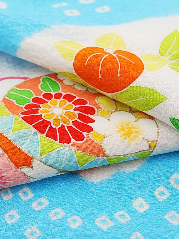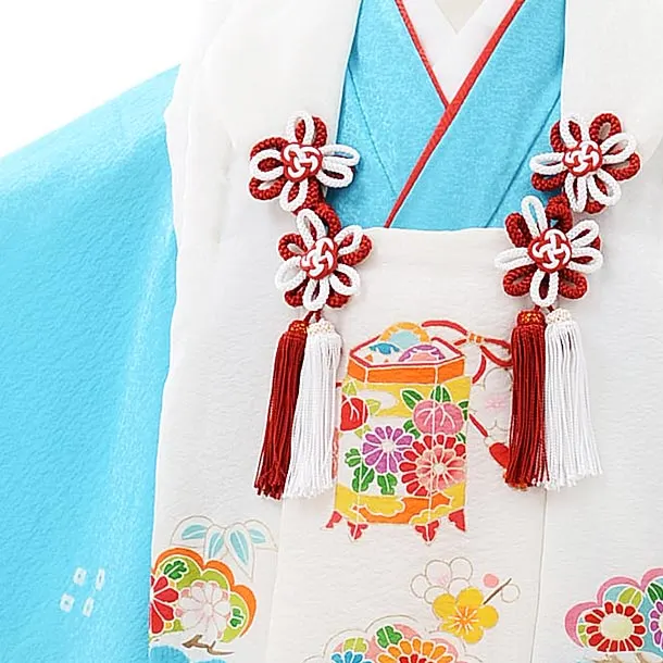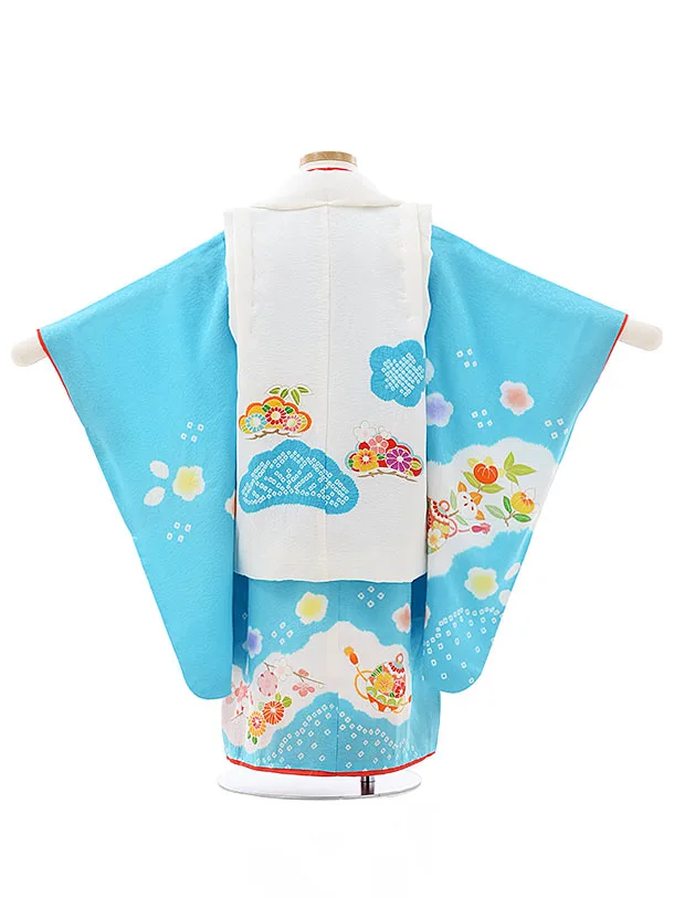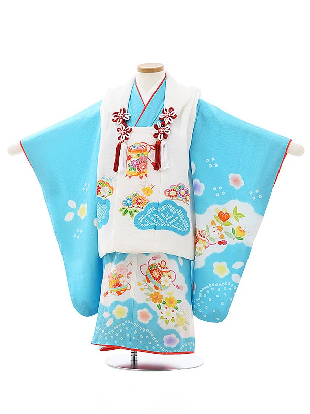 七五三レンタル(3歳女児被布)4025【高級正絹】白地貝桶x水色鈴