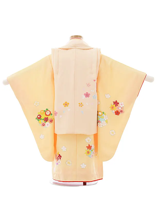 七五三レンタル(3歳女児被布)4026【正絹】淡オレンジ梅x花丸