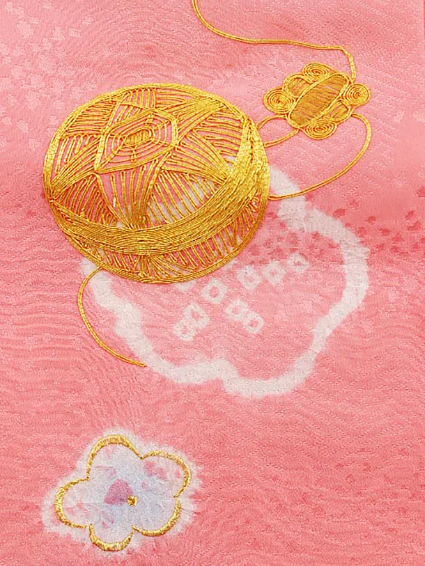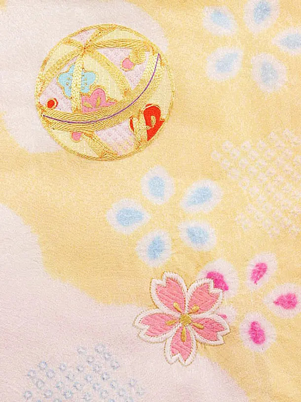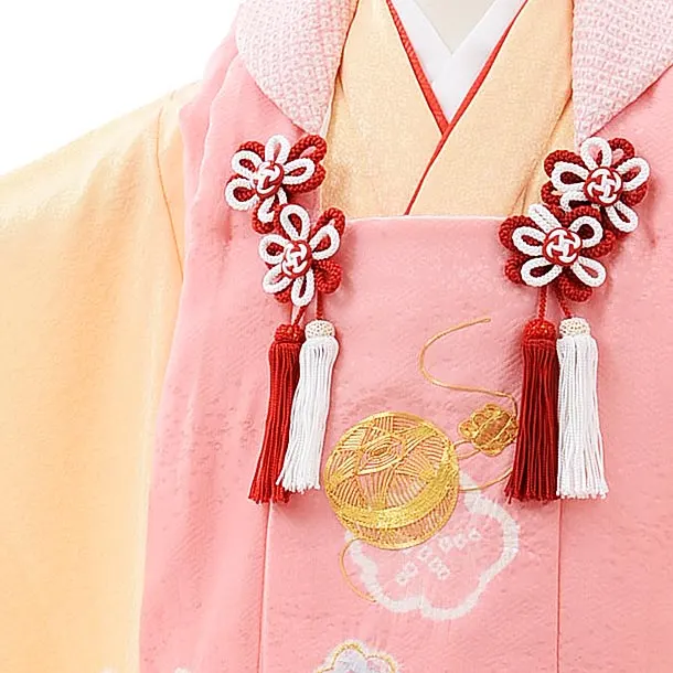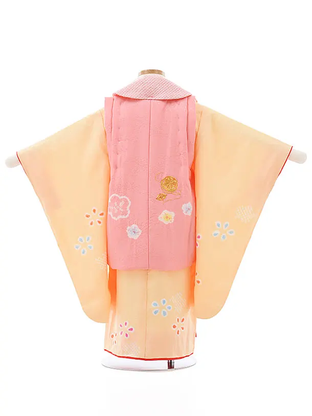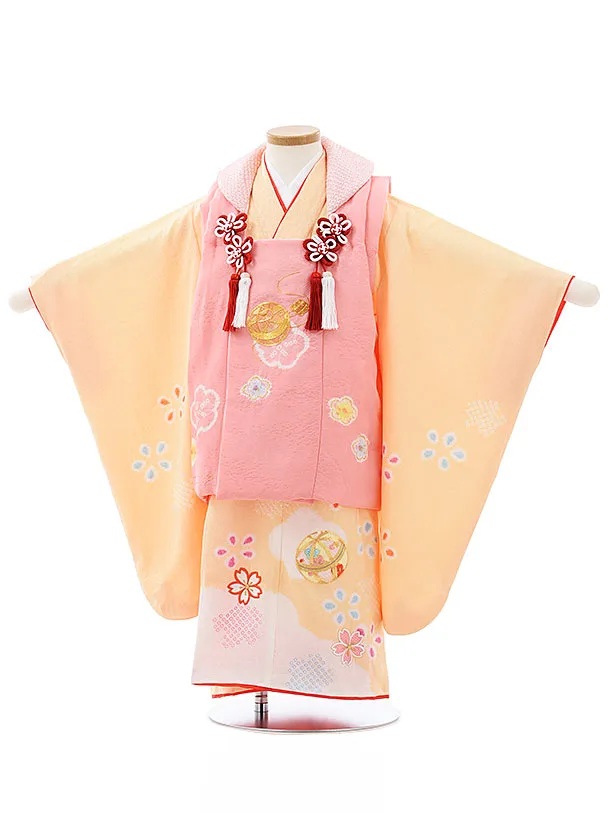 七五三レンタル(3歳女児被布)4027【正絹】ピンク刺繍まりx淡オレンジまり桜