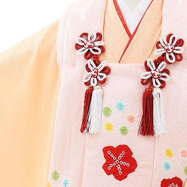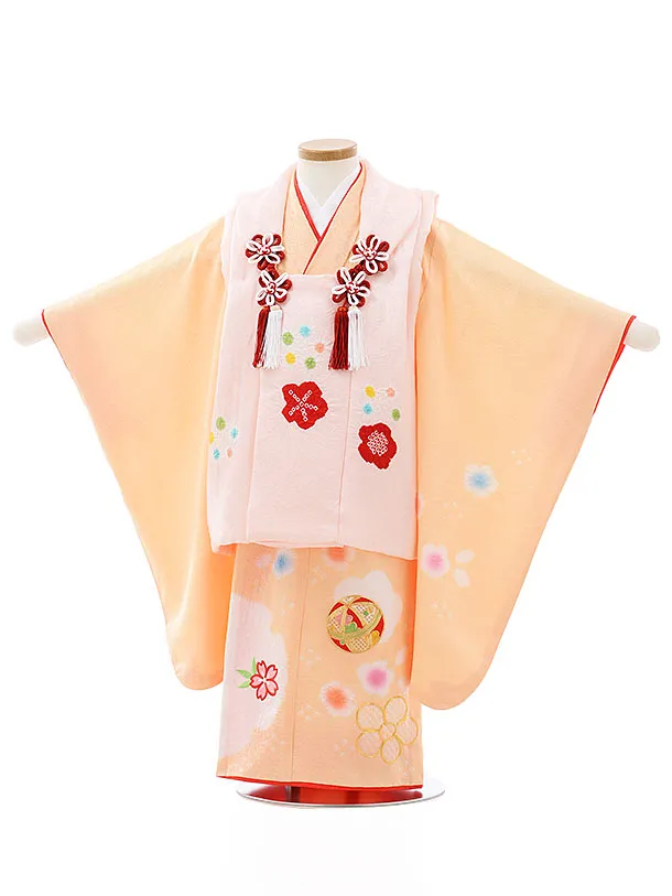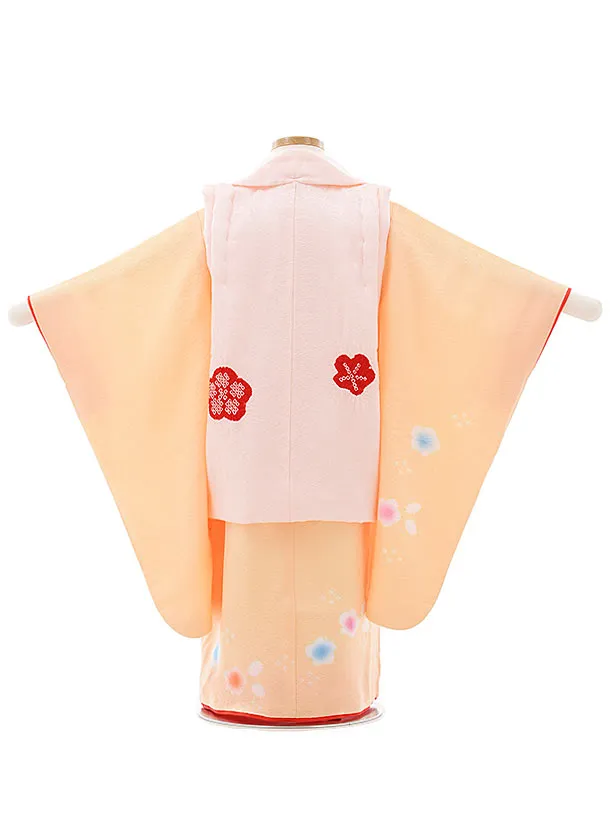 七五三レンタル(3歳女児被布)4029【正絹】薄ピンク梅×薄オレンジ刺繍梅鞠