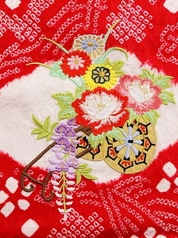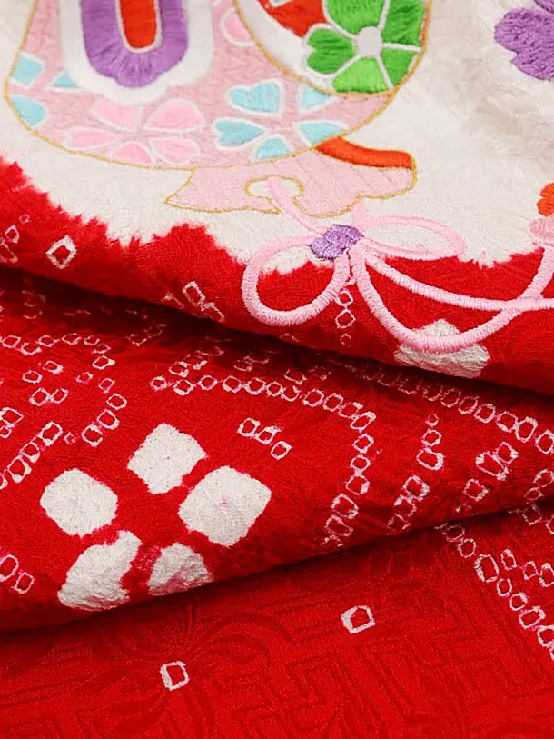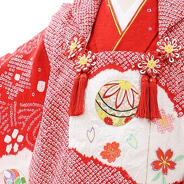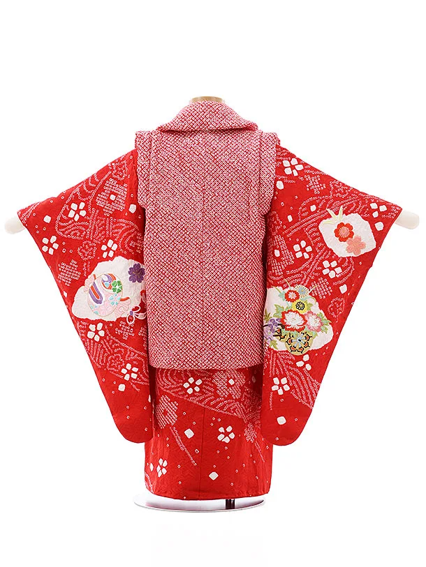 七五三レンタル(3歳女児被布)4036【正絹】赤絞りまり刺繍桜