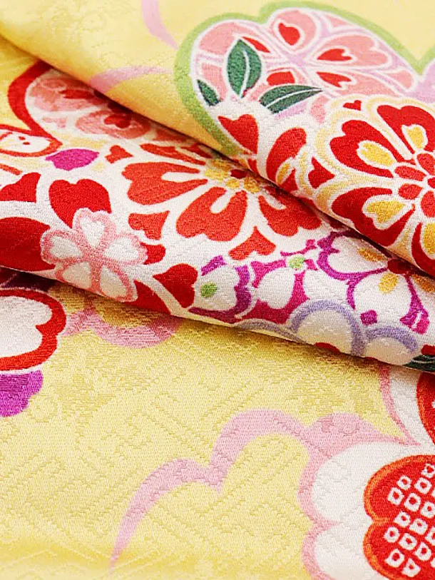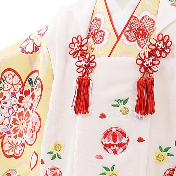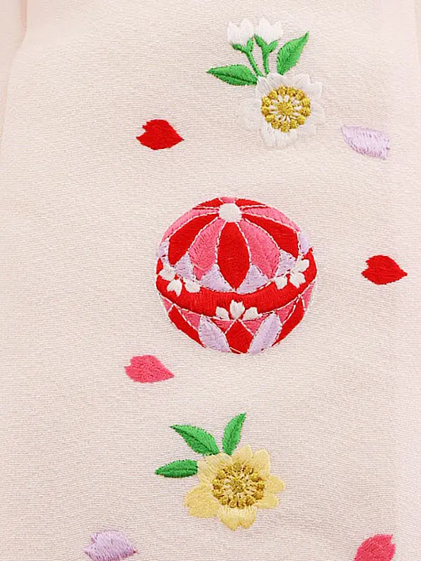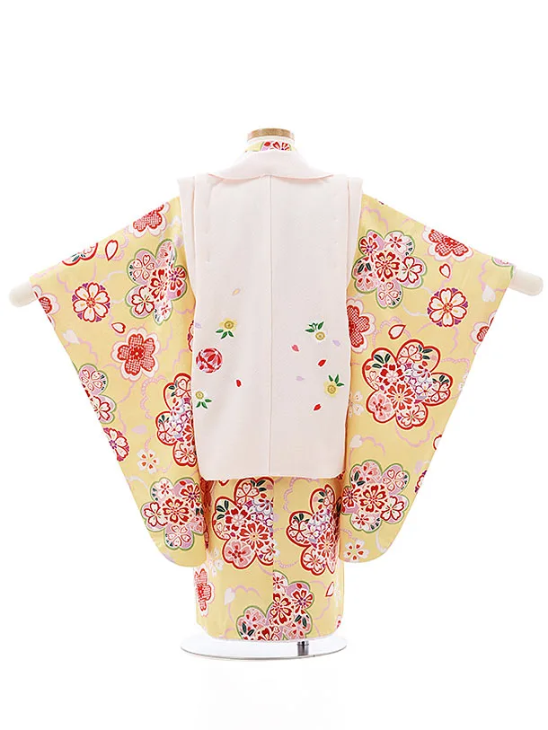 七五三レンタル(3歳女児被布)4041【正絹】薄ピンク刺繍まりx黄色桜