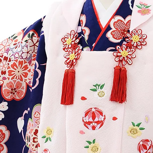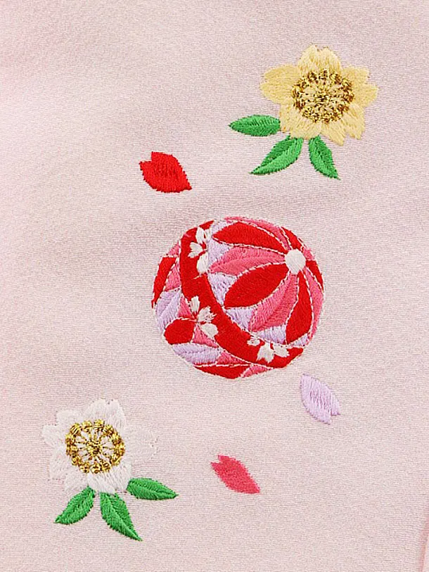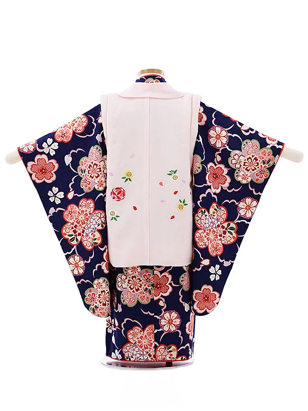 七五三レンタル(3歳女児被布)4044【正絹】薄ピンク刺繍まりxブルー桜