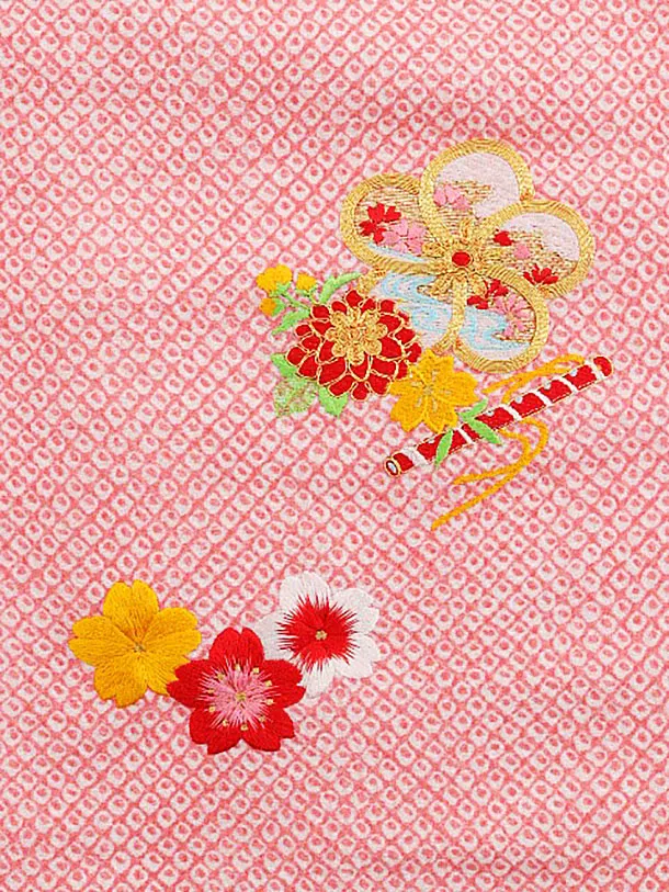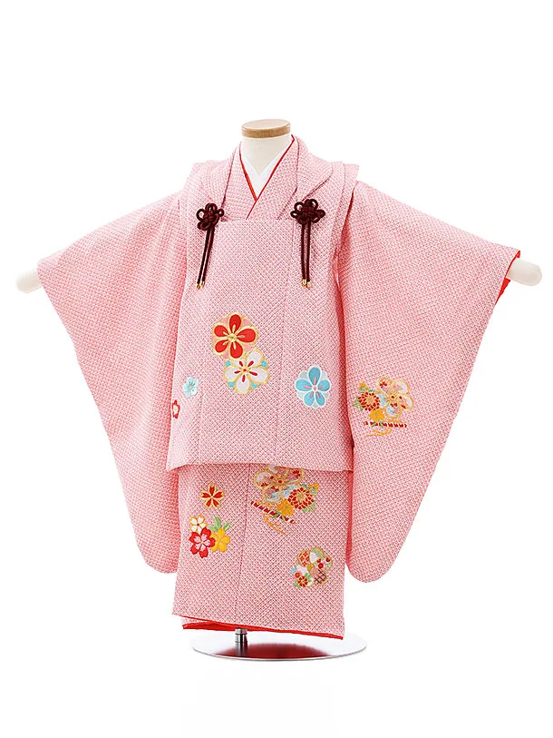 七五三レンタル(3歳女児被布)4047ピンク疋田調刺繍梅桜
