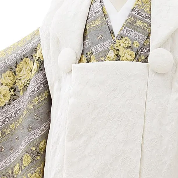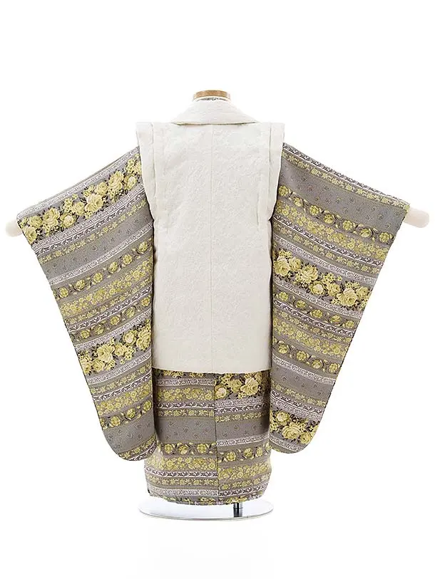 七五三レンタル(3歳女児被布)4055オフホワイトxグレー地イエローバラ