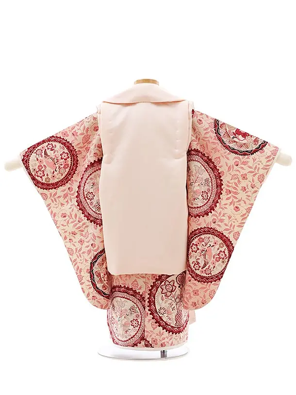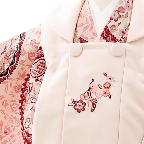 七五三レンタル(3歳女児被布)4062九重 ピンク小鳥x ピンク更紗