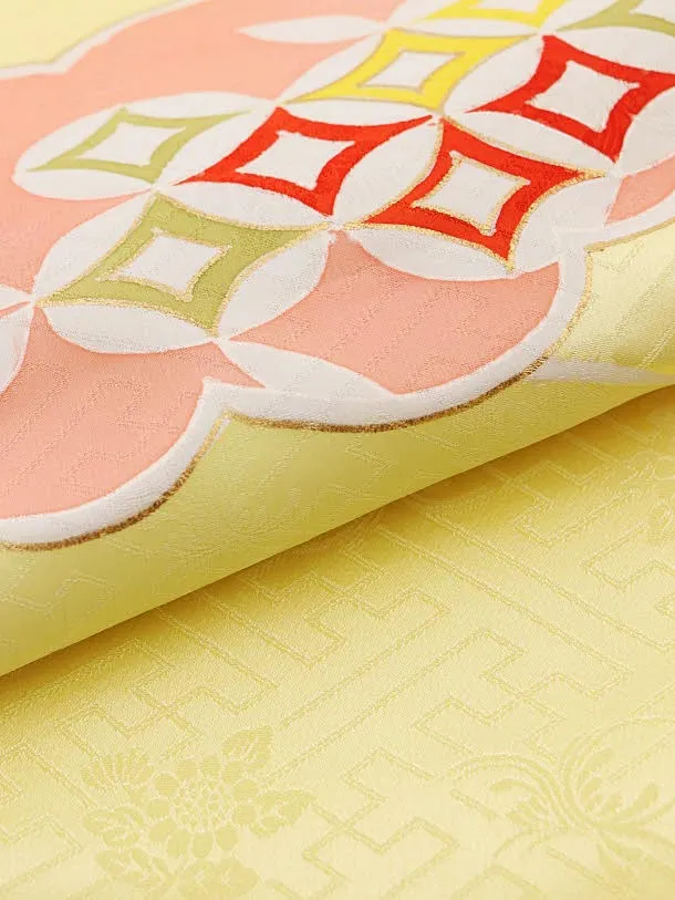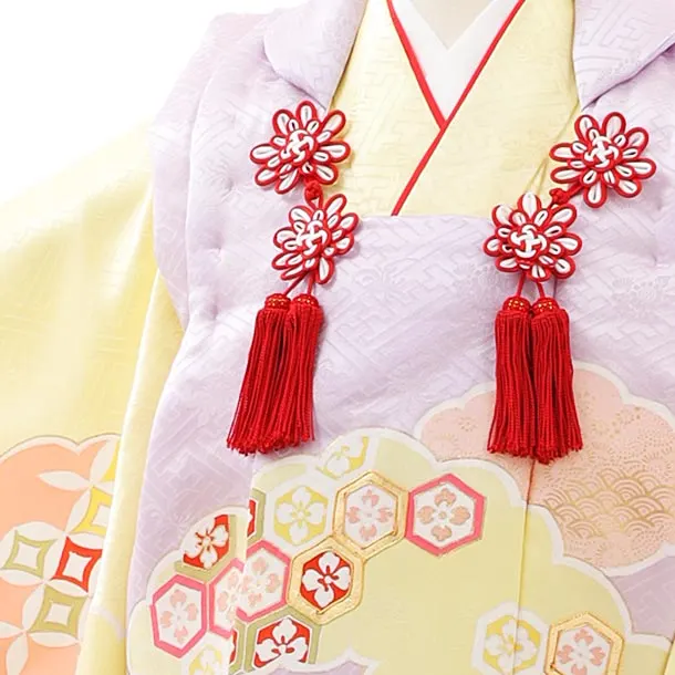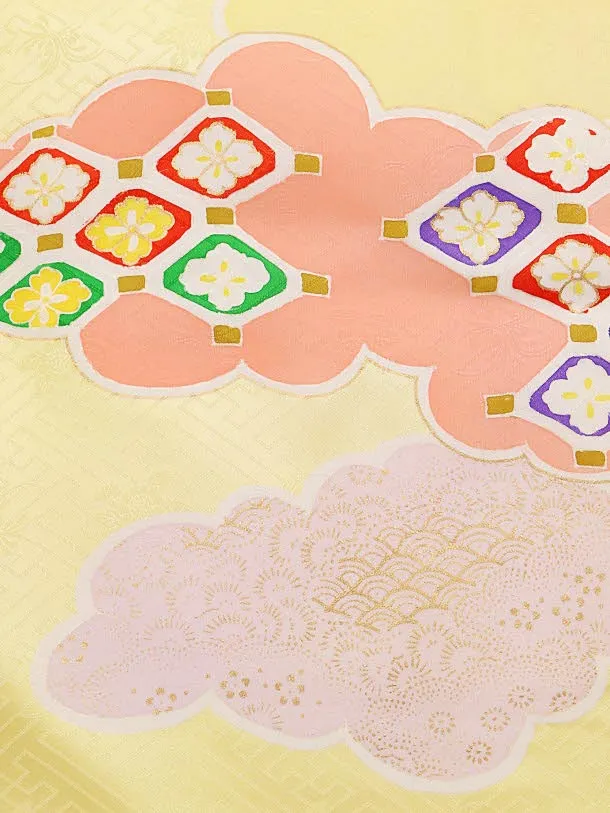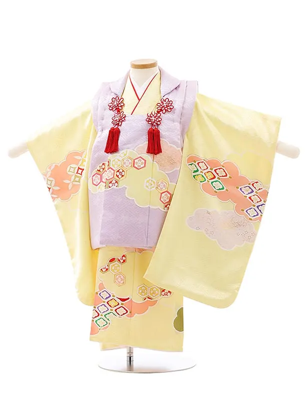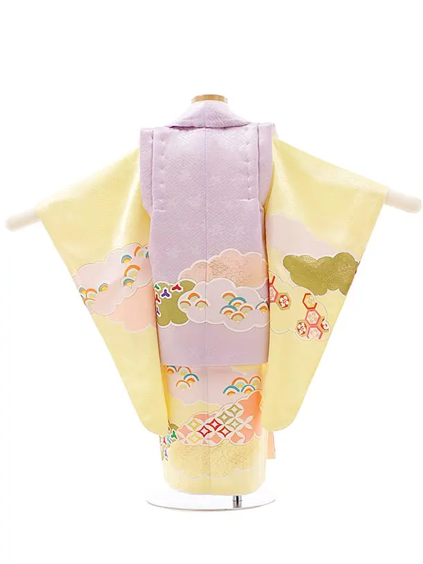 七五三レンタル(3歳女児被布)4071【正絹】すみれ色xうす黄色雲取り