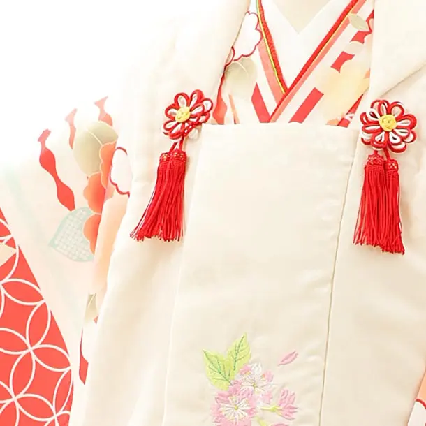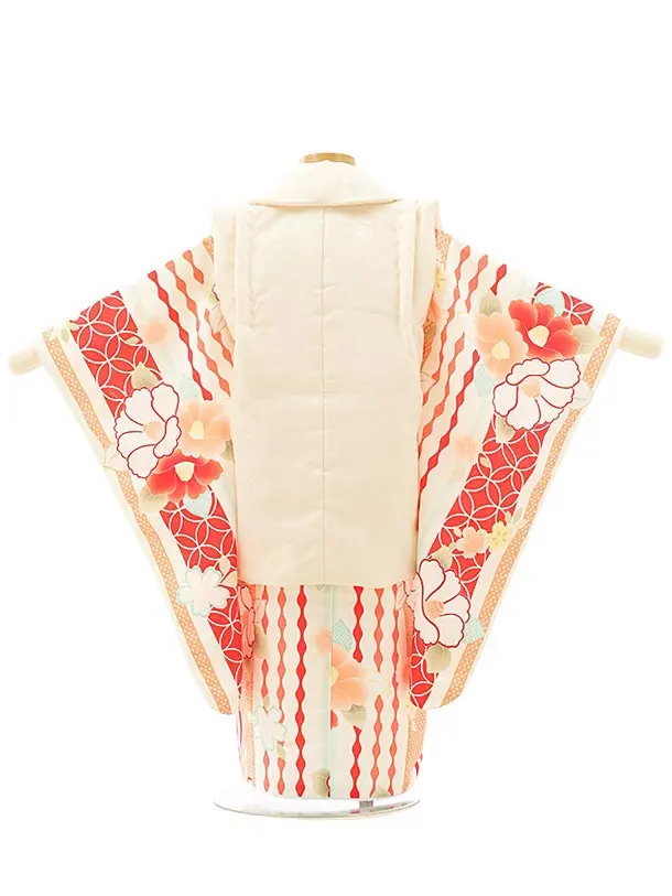 七五三レンタル(3歳女児被布)4082白桜蝶刺繍x白地赤椿