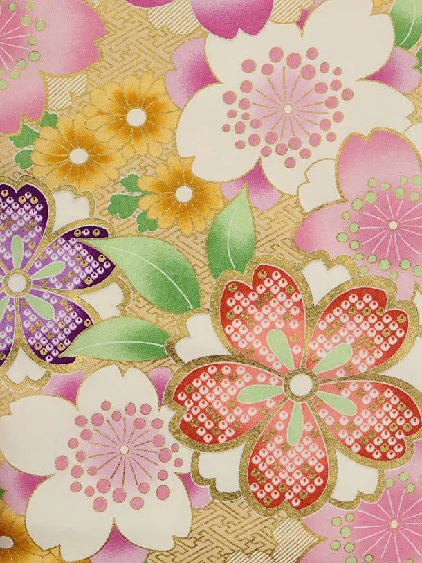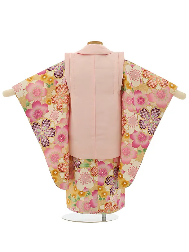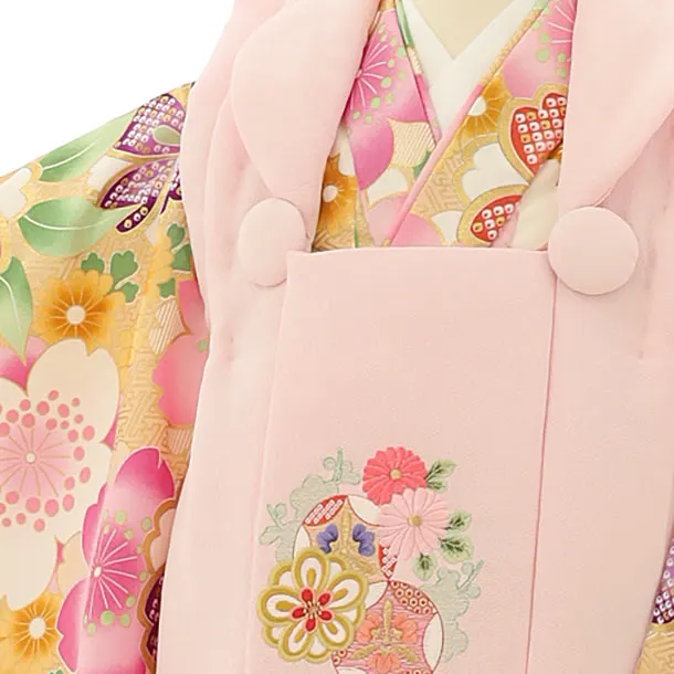 七五三レンタル(3歳女児被布)4093薄ピンク刺繍菊xベージュ地桜